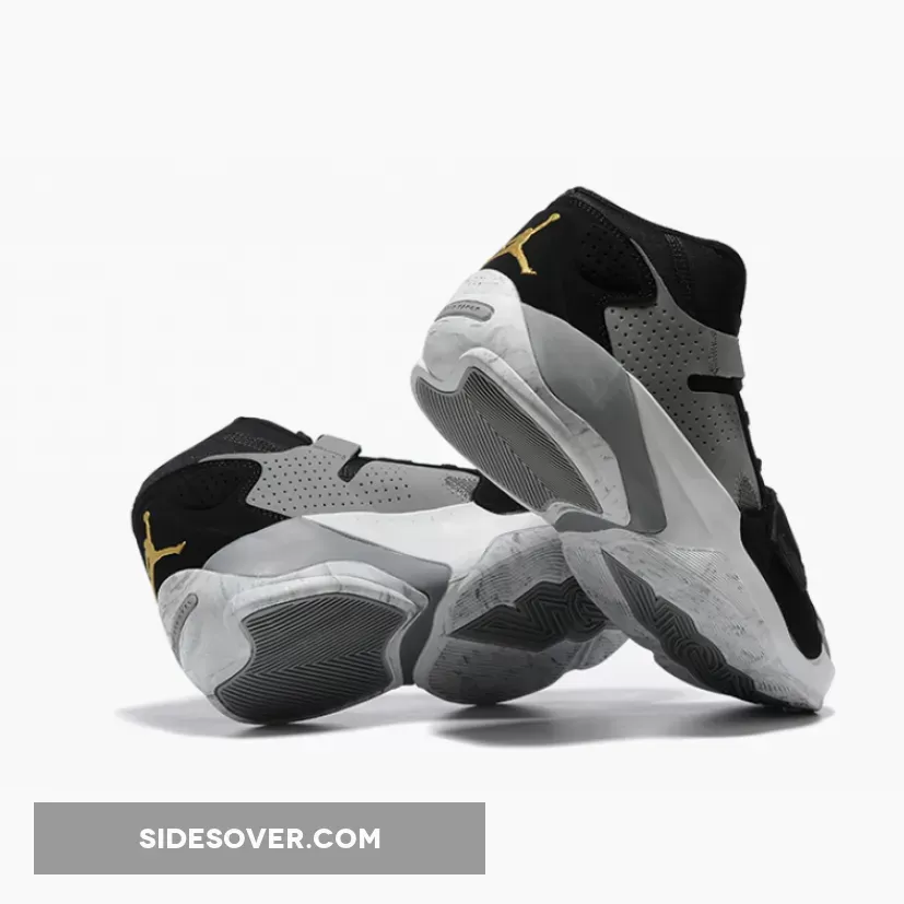 Here, uppers of mesh, nylon, and perforated leather and suede arrive in shades of cool grey and off-noir, with little deviation between. Monochrome colors return to the sile unit underfoot, with bright white midsoles hosting grey heel paint and marbelized outsoles to complete the design.