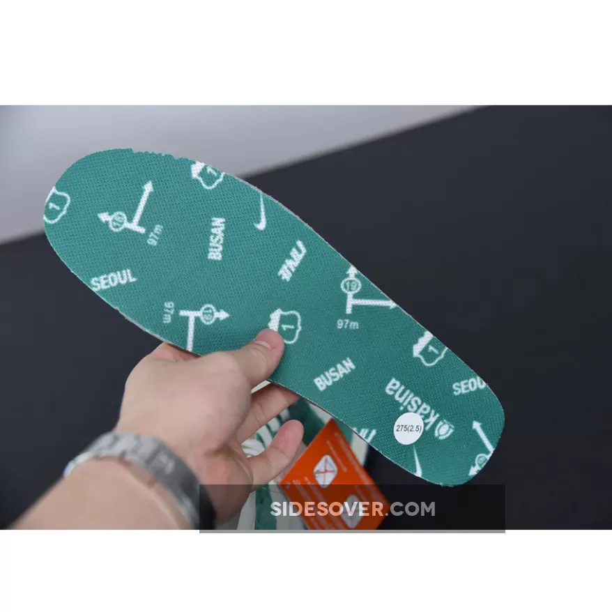 The two colorways of the Dunk Kasina both reference travel through Korea. The Neptune Green colorway explicitly pulls from the that lines the Gyeongbu Expressway, the main highway between Busan and Seoul. During the mid-’80s, the same period the Dunk was introduced, Seoul experienced a population boom. This growth, symbolized by travel across Korea’s highways, underpins the Kasina journey.