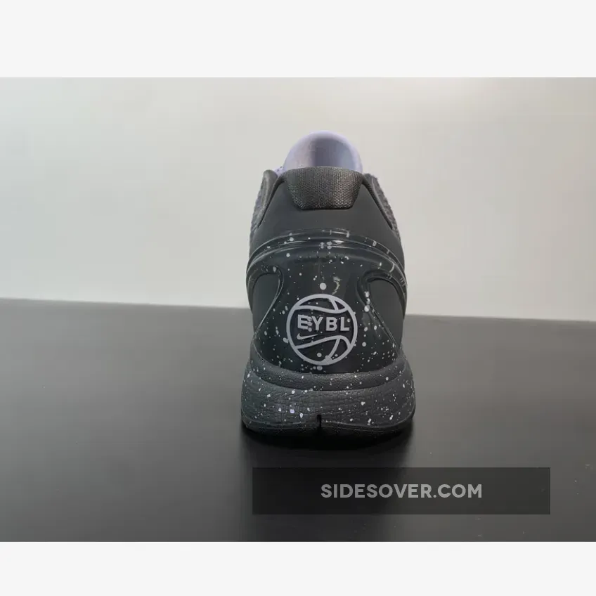 the colorway picks up where the series left off, opting this time for shades of deep purple and black. The latter dyes the entirety of the heel clip and midsole, speckled with splatters of grey all throughout. Above, the Swoosh opts for a white neutral, its scales lightly tinted with the purple that air brushes behind in varying levels of intensity. Kobe’s logo, then, outfits the tongue, placed opposite to the EYBL insignia that dresses the heel in what looks to be reflective paint.