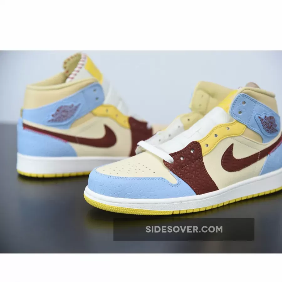 Jordan Brand now turns to Parisian-based imprint Maison Château Rouge to lend their touch on the Air Jordan 1 Mid SE “Fearless” that comes packaged with heavy detailing. Often heralded for his frequent usage of wild patterns and a wide array of vibrant colors, co-founder Youssouf Fofana honors his African roots by applying softer tones of yellow and blue color-blocked with muted browns distributed throughout the upper. In addition, assorted intricate patterns arrive in debossed fashion sprawled throughout this rendition’s overlays, as well as hand-stitched accents on the tongues and lateral/medial heels to further translate its cultural motif.