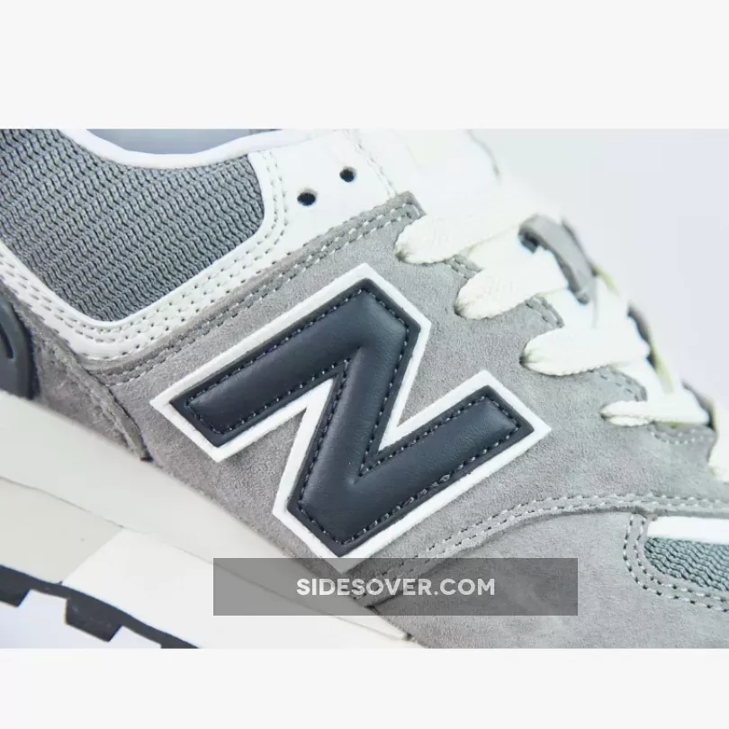 This NB 574 has a “Black/ Marblehead/ White” colour palette. The mesh base and accents are in the dark grey Marblehead while the overlays, including the mid-panel, are all in black suede. The “N” logos on both sides of the shoe stand out in Marblehead outlined in white. Gold NB branding embellishes the white tongue tab and white embroidered NB text branding can be found on the grey heel tab. A split white-and-beige EVA foam midsole enhanced by ENCAP technology cushioning and a black rubber outsole round out the style of these kicks.