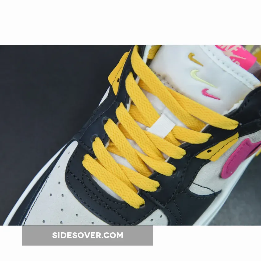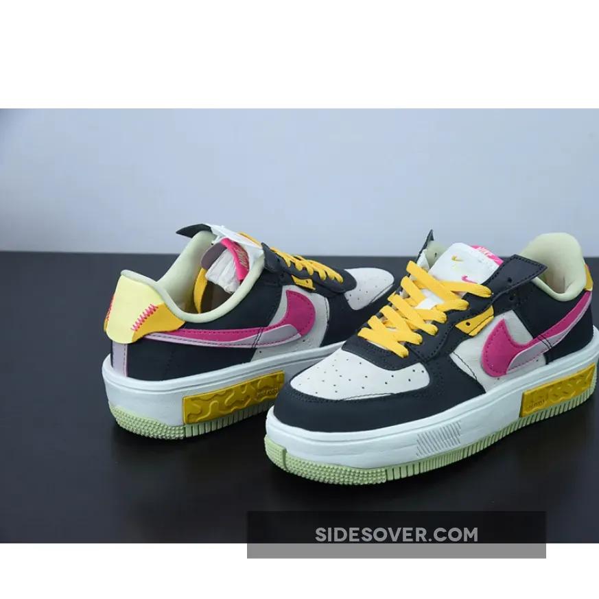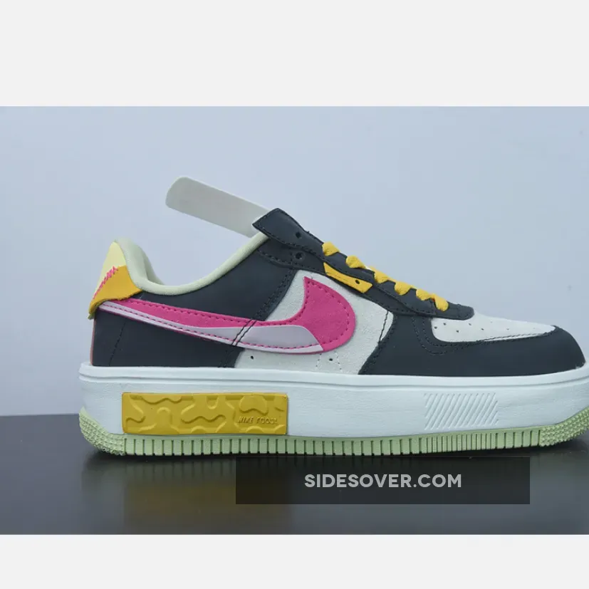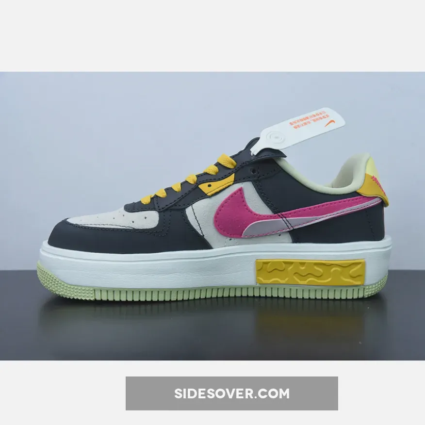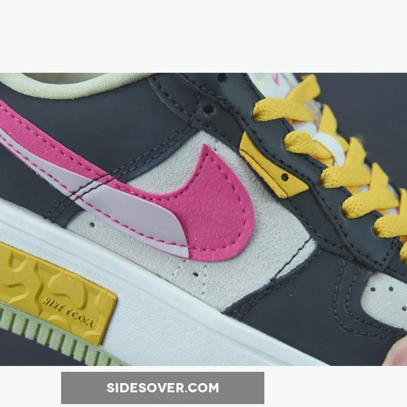 The Nike Air Force 1 Fontanka dresses up in playful colours and a deconstructed look with the new Nike Air Force 1 Fontanka Pink Prime. This AF1 features an “Off-Noir”, “Summit White” and “Pink Prime” colourway. The base of the upper is Summit White suede showing on the toe box and the quarter. The overlays, also in suede, on the toe cap, mudguard, the first layer of the stacked eyestay panel and the foxing are in “Off Noir”. The striking stacked signature profile Swooshes on both the medial and lateral sides of the shoe feature“Pink Prime” with a flannel-looking finish layered over by a lavender-coloured patent patch. Pops of golden yellow and light yellow appear on the eyestay panel, the laces and the unbranded heel tab. The stacked tongue tab shows off three mini Swooshes in golden yellow, Summit White and Pink Prime.