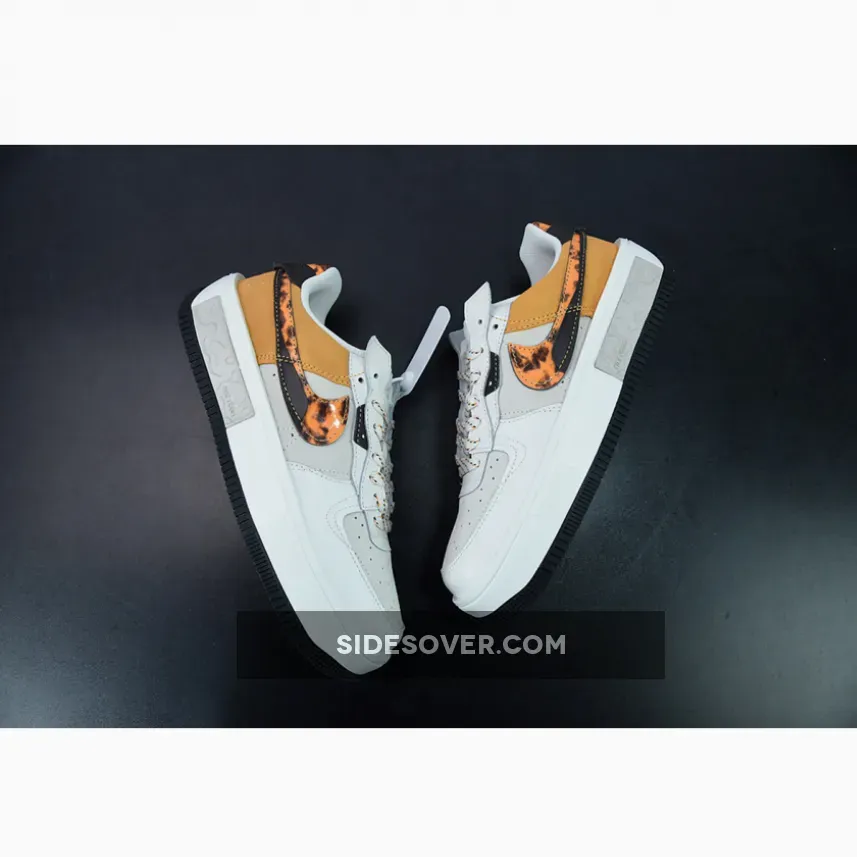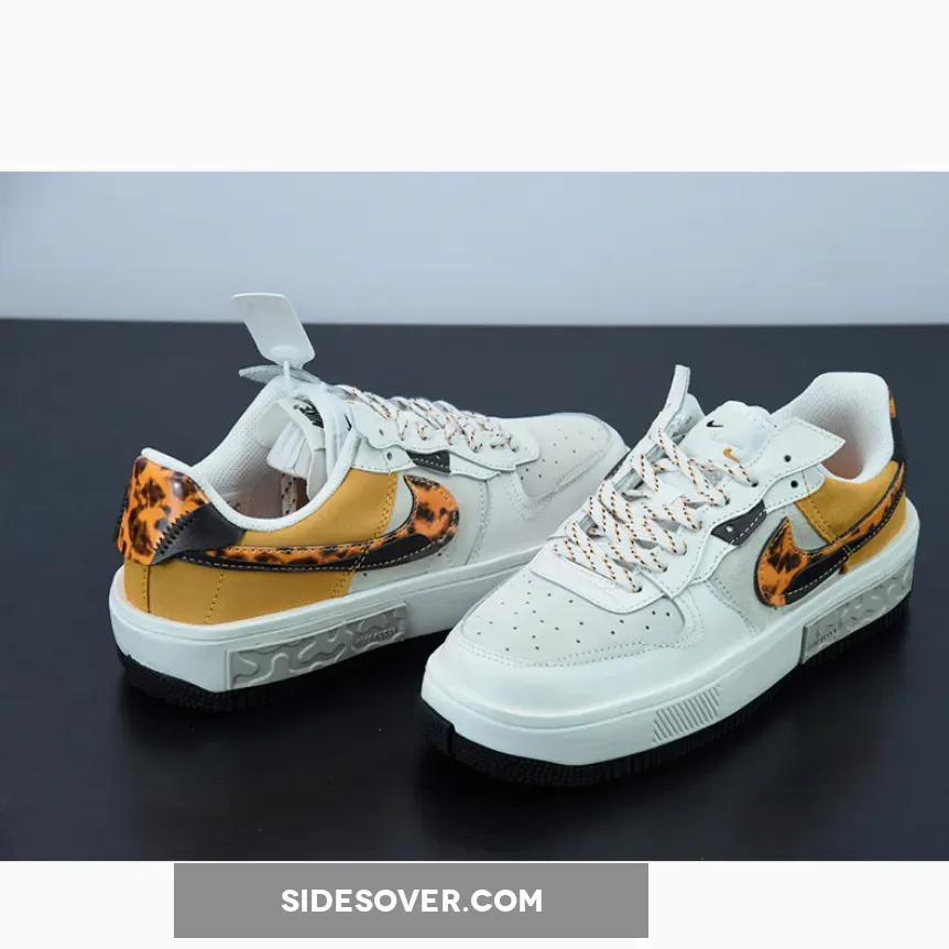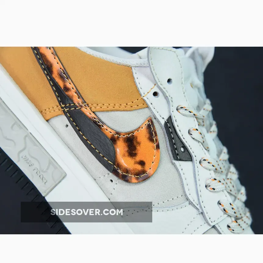 The Nike Air Force 1 Fontanka dons a nice mix of grey and orange with a touch of tortoiseshell. Check out the sherbet-looking Nike Air Force 1 Fontanka White Orange with a twist. A dove grey suede dresses up the base while smooth white leather takes over on the toe cap and the eyestay panel. A melon-coloured suede heel panel adds a touch of contrast to the upper. What gives this shoe a unique personality is the tortoiseshell Swooshes on the quarters with brown tumbled leather accents sewn over the bottom halves. The brandless heel tab follows the Swoosh treatment. The white laces feature brown and orange patterns.