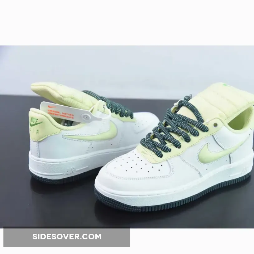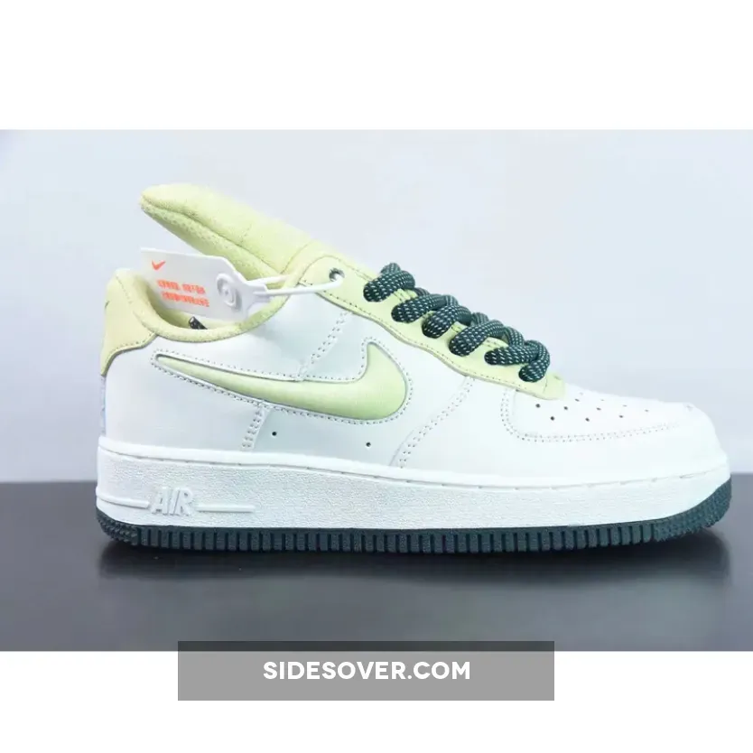 The palette on the “Big Tongue” Air Force 1 Low is as refreshing as a summer afternoon. Anchored by a clean white base, it lets its colors do the talking—quite literally. The rubber outsole and thick laces are awash in a refreshing green, setting the stage for the other standout hues. Then comes the lemon—a color that punctuates the elongated tongue, eyestay, heel overlays, and notably, the protruding jewel Swoosh which graces the profile side. What’s more, a lasting swatch of neon is painted along the heel’s embroidered logo while the laces’ dark teal tint returns to treat the tread in conclusion.