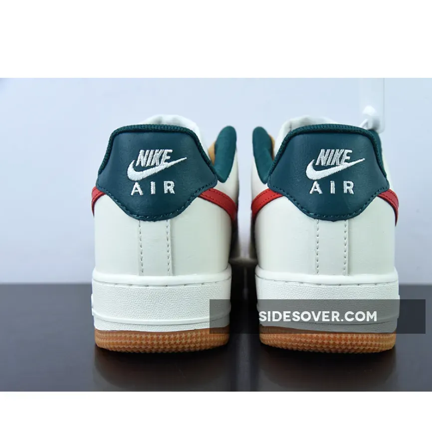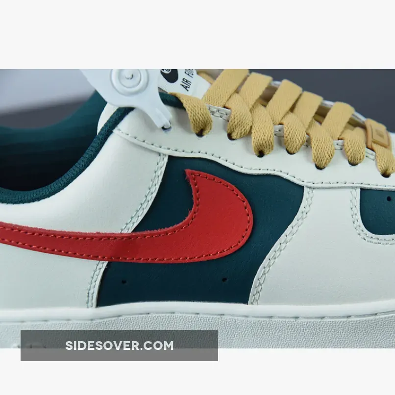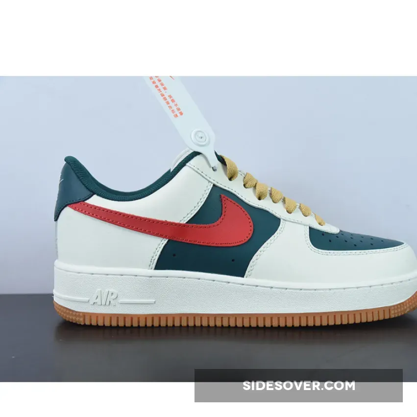 If you’re looking for the perfect pair of Air Force 1s to add to your sneaker shelves, then look no further. We’ve been spoilt for choice as the model celebrates its 40th anniversary this year, but one of our favourite pairs to join the line-up is the slightly Gucci-esque Nike Air Force 1 Low “Sail/Green/Red”. Arriving in super-clean tricolour colour blocking, this pair is a must-have, so let’s take a closer look at them. For a general release shoe, these sneakers really exude luxurious vibes. A deep green dresses the toe box, heel tab, liners and side panels, while creamy “Sail” overlays wrap their way around the rest of the uppers. From here, a bright red Swoosh shoots across the pairs sidewalls, while Nike Air branding hits arrive in black and cream.