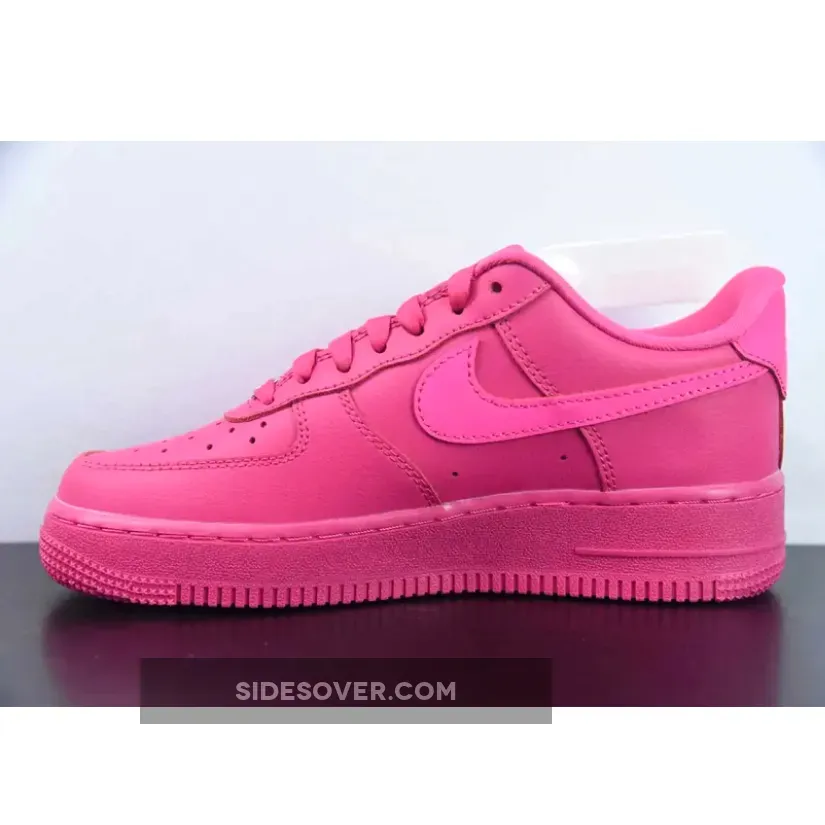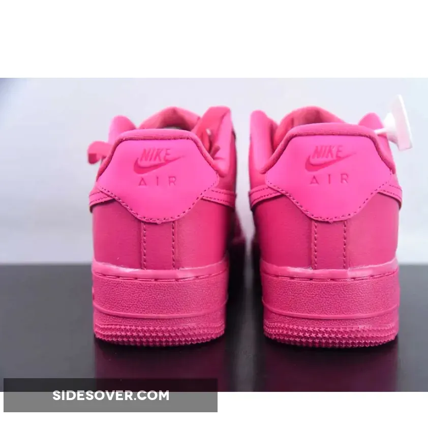 This low-cut AF1 looks like it’s been dipped in a Fireberry fuchsia dye from heel to toe. The only exceptions are the signature profile Swooshes on both the medial and lateral mid-panels, and the heel tabs which are in a slightly lighter shade.. Rounding things off, matching tonal branding can be seen on the tongue labels, heel tabs, and insoles, while “Metallic Silver” lace dubraes sit atop the classic rubber outsole. Branding on the tongue tabs, the insoles and the heel tabs are subtle with a fuchsia on fuchsia treatment. A Fireberry sole unit equipped with signature pivot points finishes off the style of this shoe.