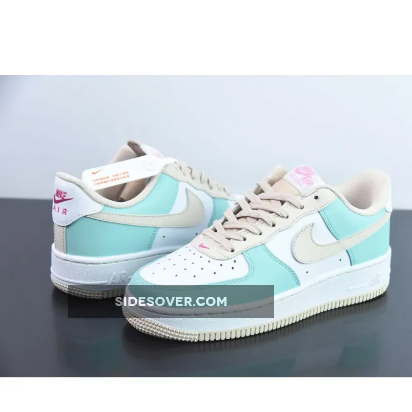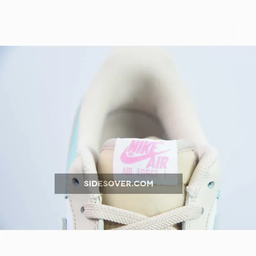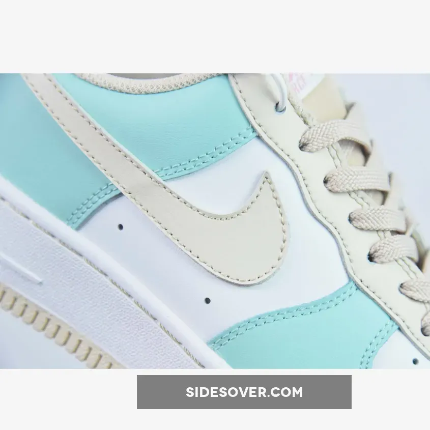 The former is served on the upper, and midsole, while minty green leathers coat the toe and heel. Creamy tints take over the soles, Swooshes, eyestays, and liners, as well as the nylon tongue and its laces.Nike branding in pink is found on the tongue, vamp, and heel tab.