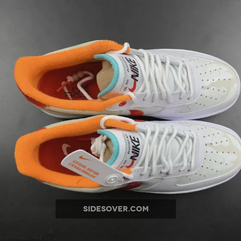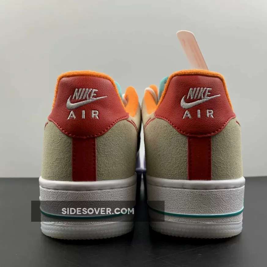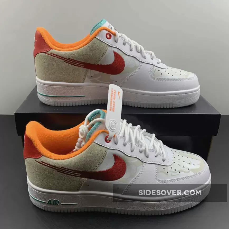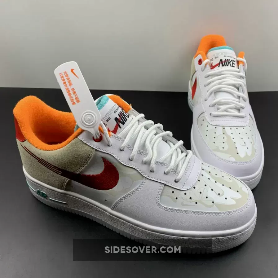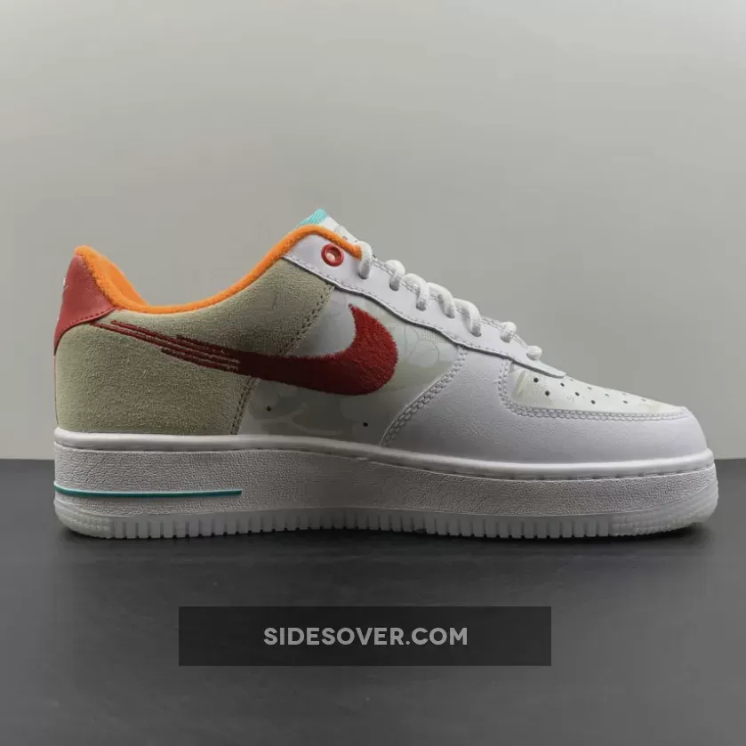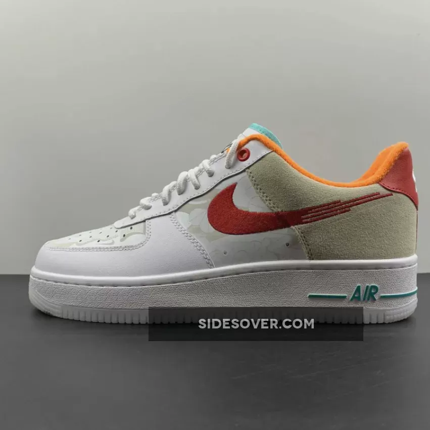 Part playful, part classic, the Nike Air Force 1 Low Just Do It White Red Teal will deliver the best of both worlds. At the forefoot, this AF1 features smooth white leather construction and a perforated toe. The look is applied to midfoot, however, it’s quickly spruced up with a flame-like embroidered Nike Swoosh. Meanwhile, the backside showcases a tan suede material that goes well with the bright red heel accent and orange collar lining. The touch of teal at the tongue also added another visual layer to this already fun Nike Air Force 1 Low iteration. This shoe closes with a chunky white sole unit with teal “AIR” branding and a semi-translucent milky white sole unit.