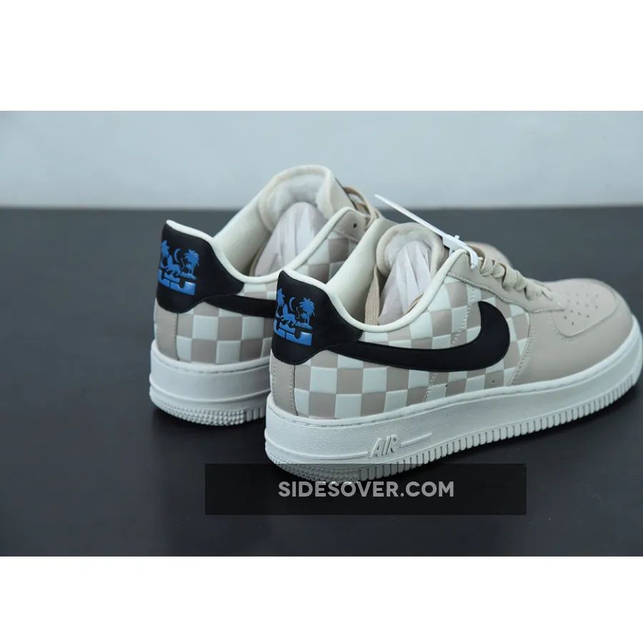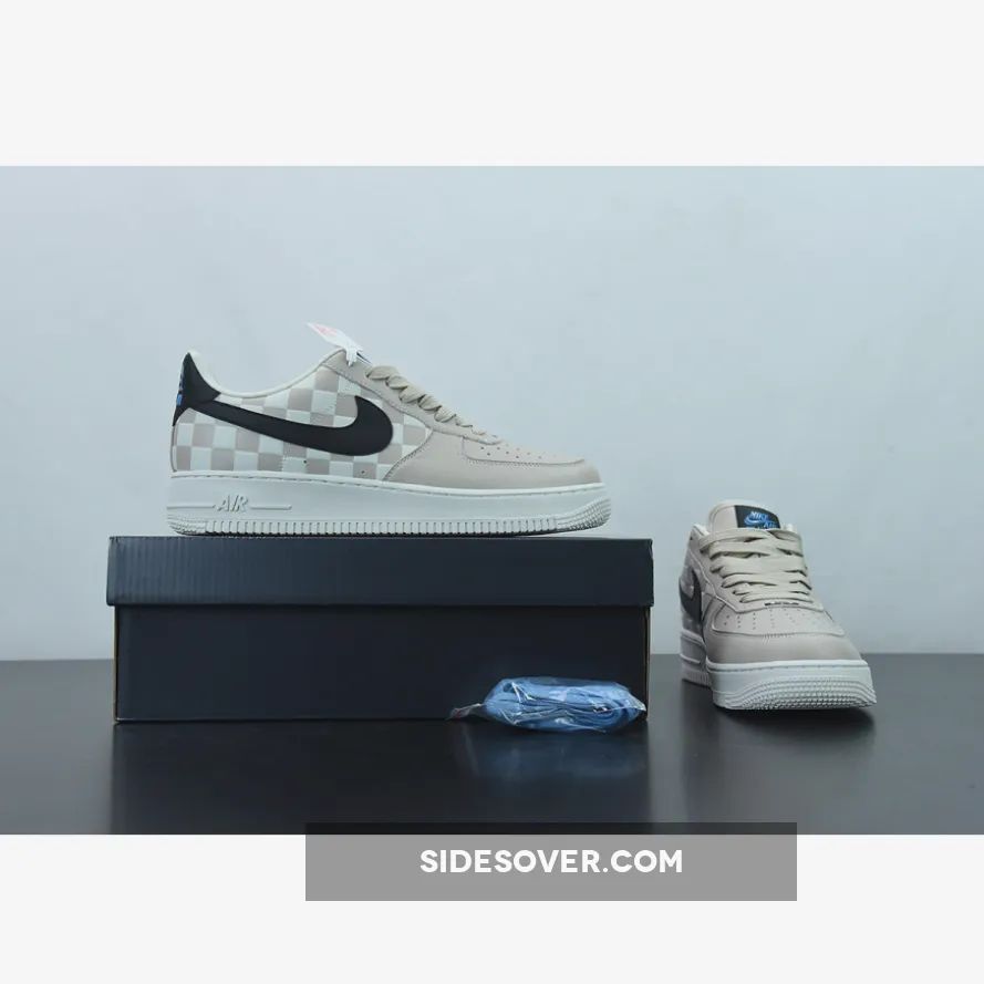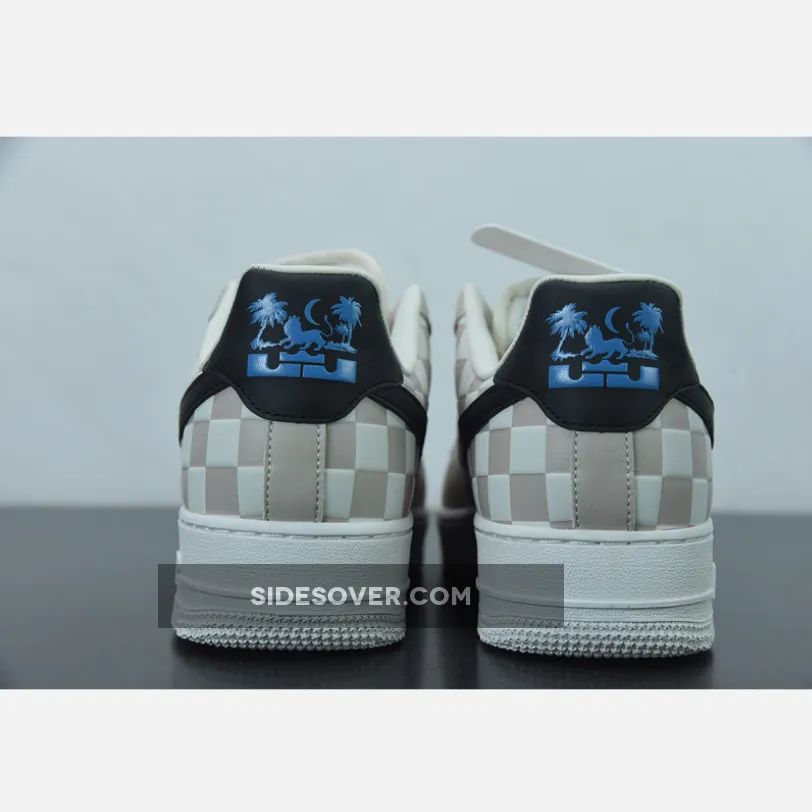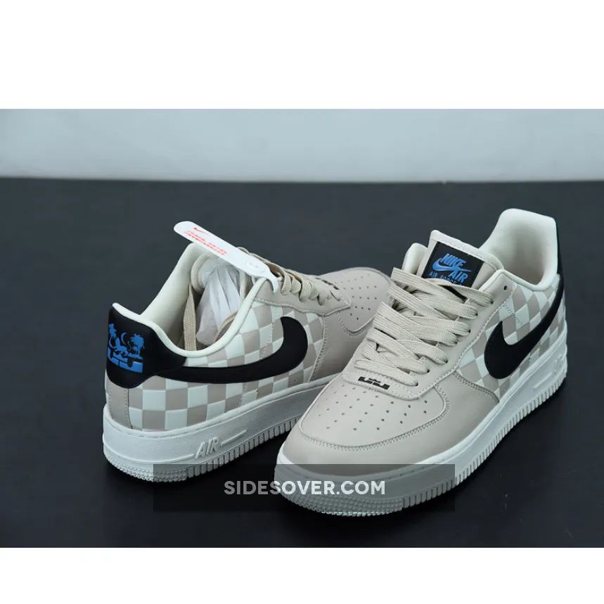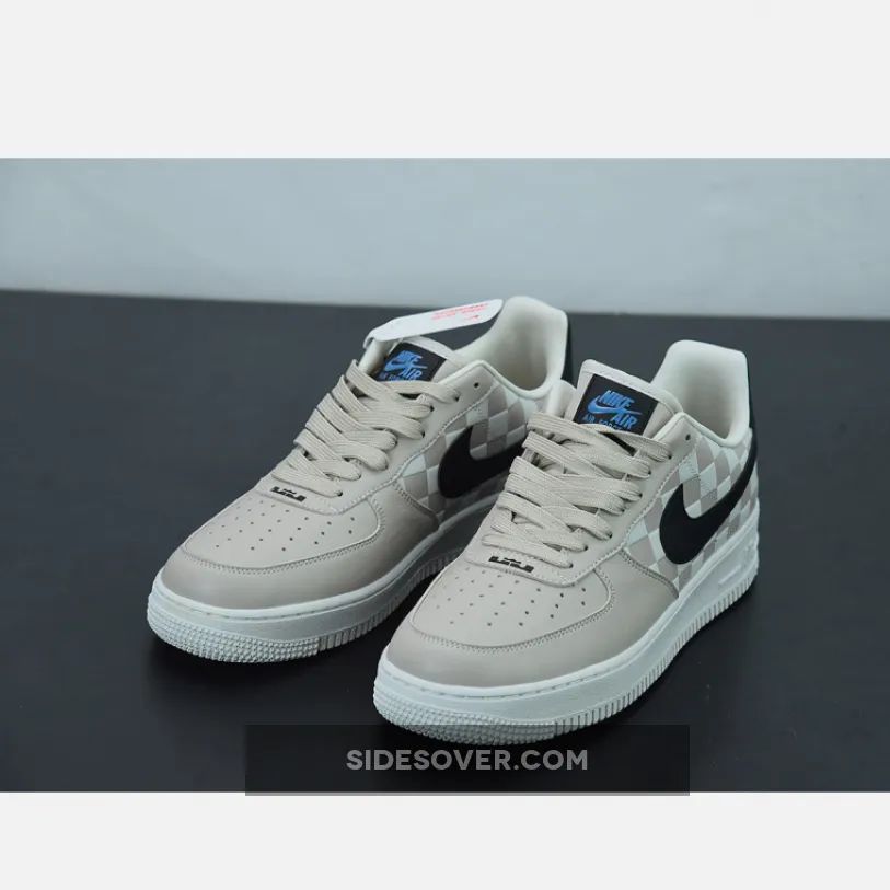 This offering of the Nike Air Force 1 Low sports a Sail and Tan color blocking detailed with a checkerboard pattern atop a solid White AF1 rubber sole. Black leather heels, tongue labels, and Swooshes highlighted with Blue branding on the tongues and heel graphics. LeBron’s “LJ” logo appears above the toe box and rear completed with his slogan “Strive For Greatness” printed on the insoles.