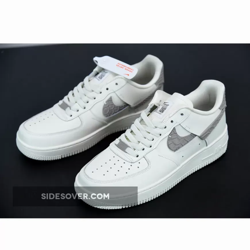 this pair opts for tan python print details that are much more wearable. To expand the neutral color palette, the base of the model indulges in a soft tan color rather than a stark white. The soft buffs help balance out an already bold model that features a split swoosh and exposed stitching.