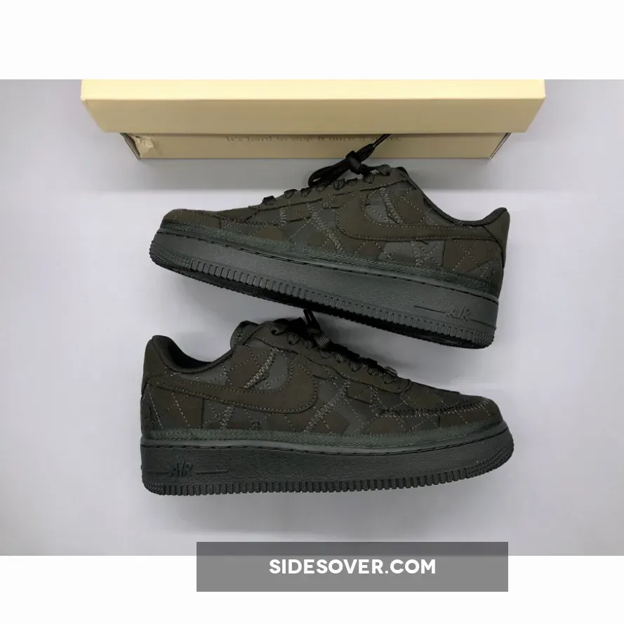 This Nike Air Force 1 Low has a quilted upper made with “Sequoia” suede, a dark fabric with a tinted green hue. The sneaker has a patchwork exterior complete with canvas and statement stitching. The shoe also features sustainable details as its made from recycled and vegan textiles.