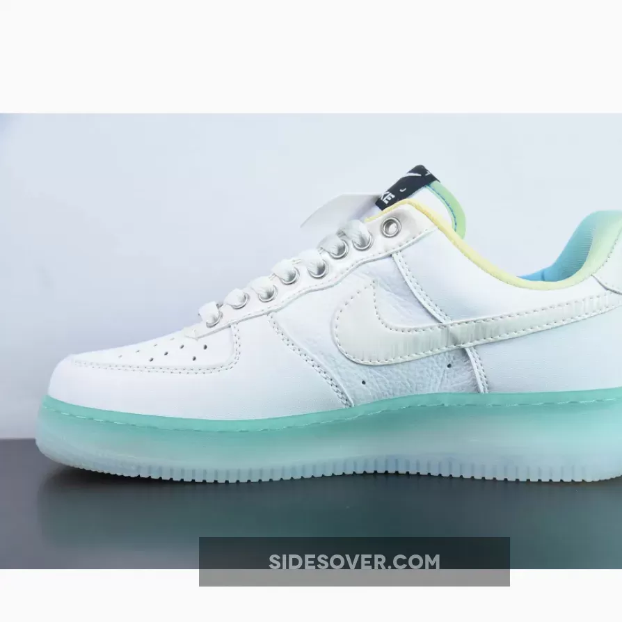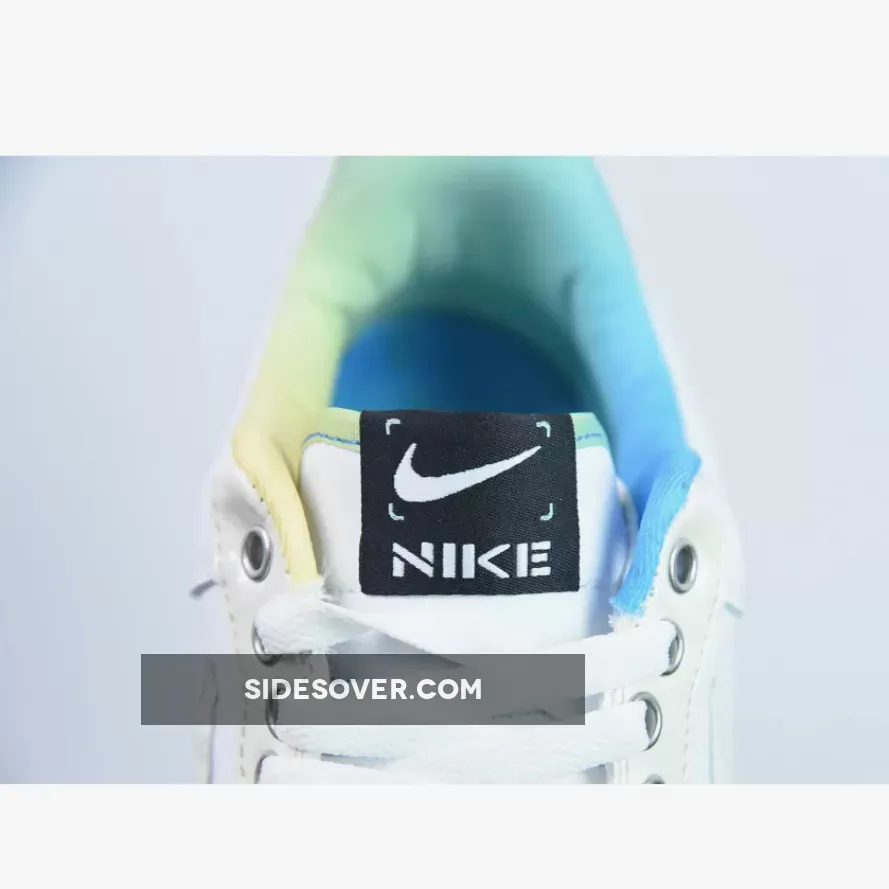 Though it presents mostly in white leather, the pair is not short in color and vibrance. Gradients are deployed at both the liner and insoles in beachy hues, while green-to-translucent jelly soles rest underfoot. Sail leathers break up the sea of white up top, with eyestays and reflective Swoosh and heel overlays proffering a slight shift in hue.
