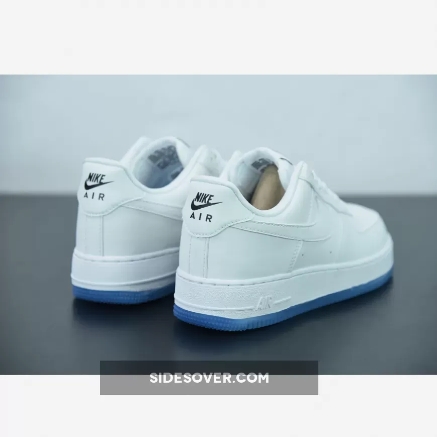 This low-top Nike Air Force 1 features a White, University Blue, and Black color combination. Highlighted with all-White leather on the upper that is UV-treated which changes colors when the sunlight hits them. Remaining the same is the liner, laces, tongue, midsole, Blue translucent lace jewels, and outsole.