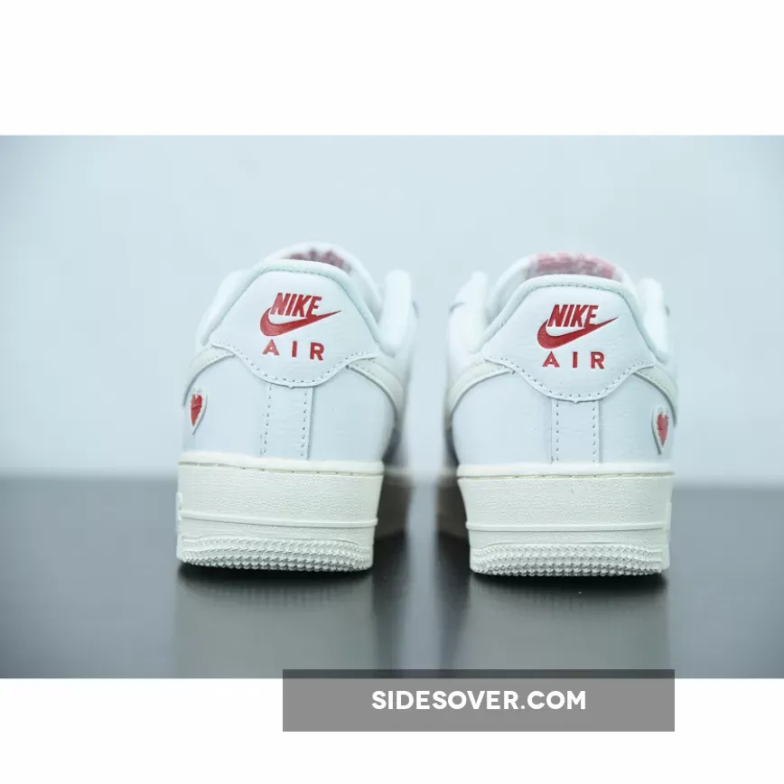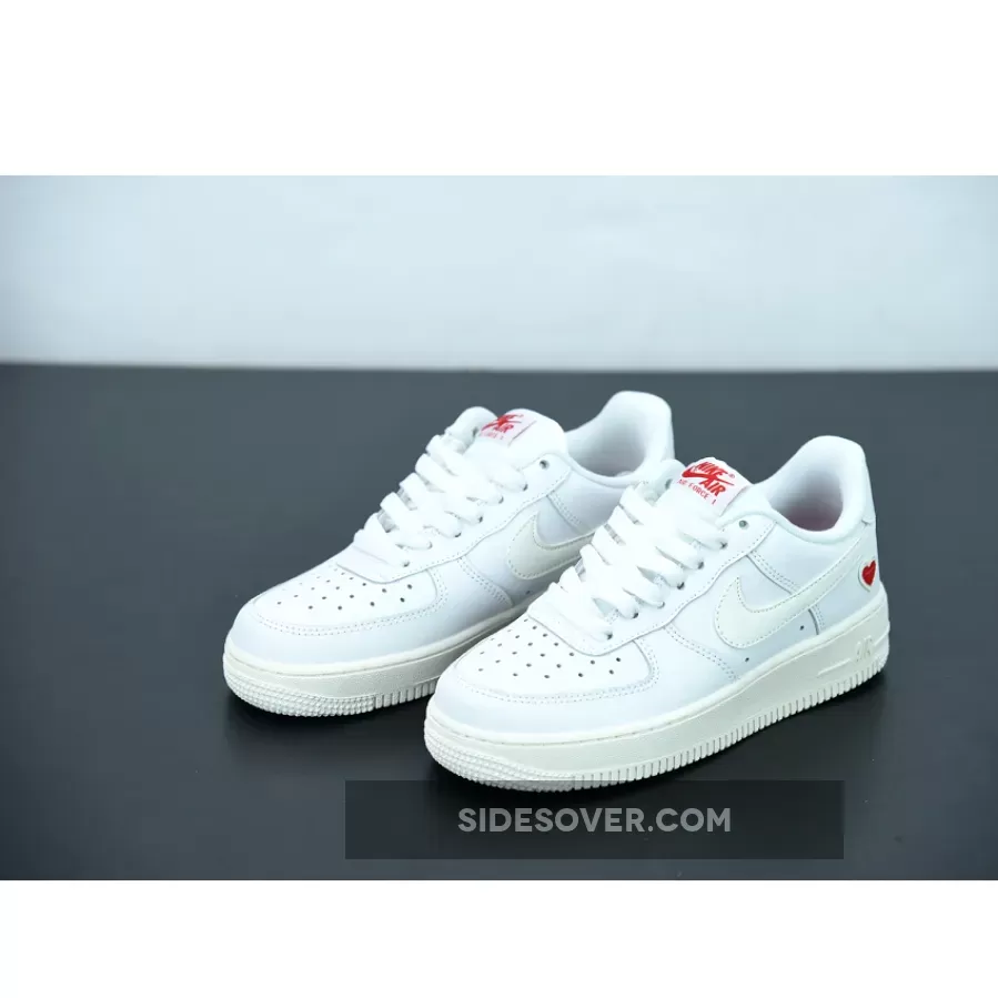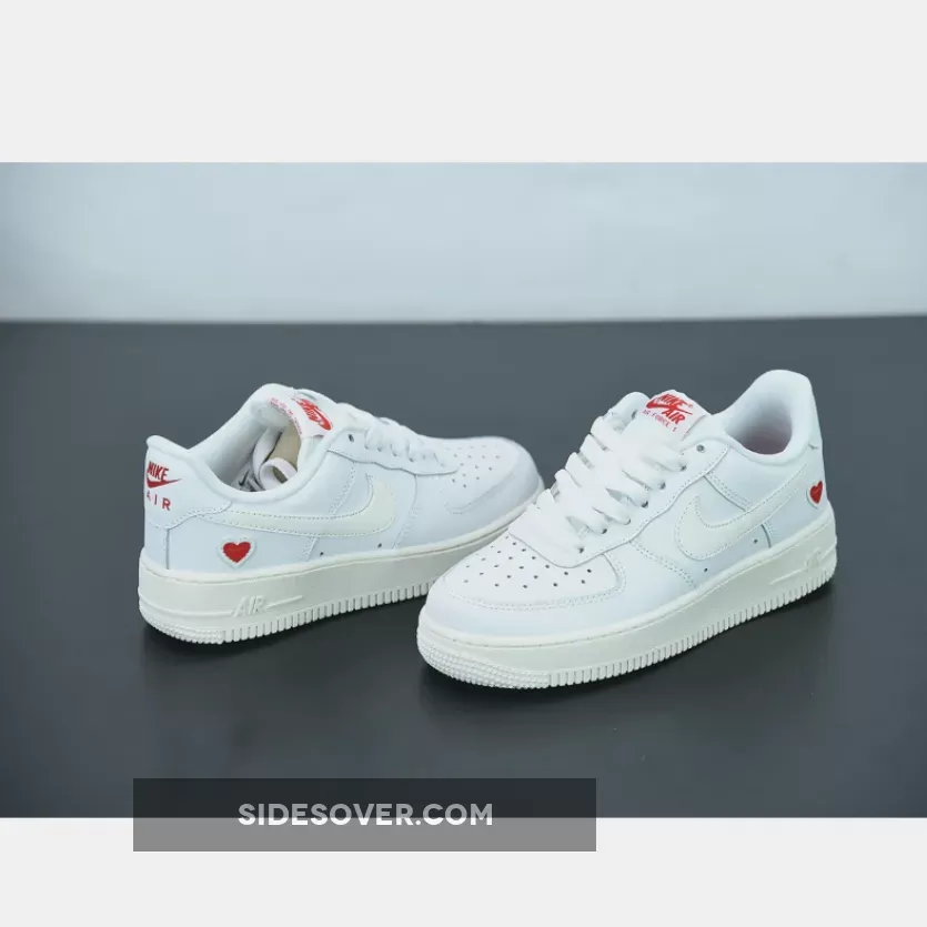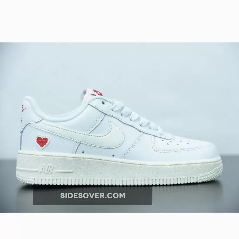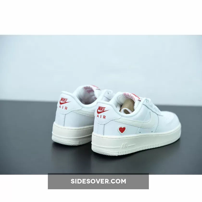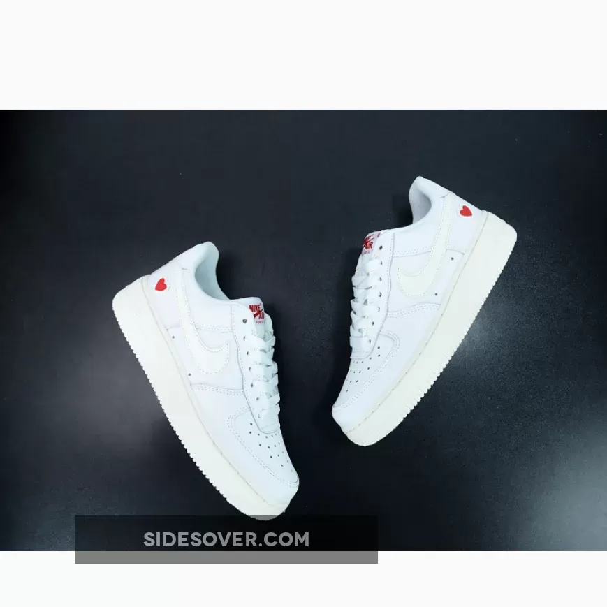 Solid white & sail colorway with a touch of Valentine’s Day red. Air Force 1 Low offers a comfy & stylish option for daily wear. Quality materials & construction make them durable & worth the price. #NikeAF1 #ValentineSneakers #Recommend