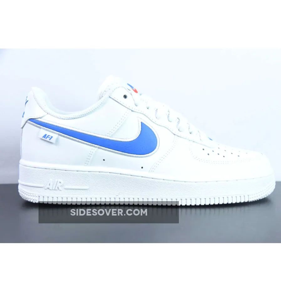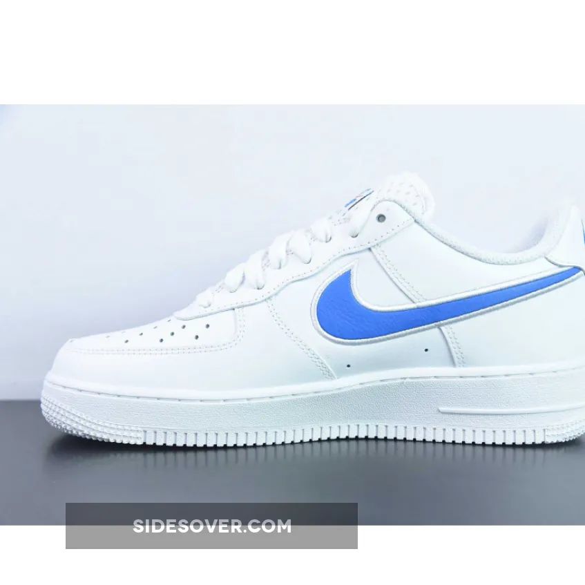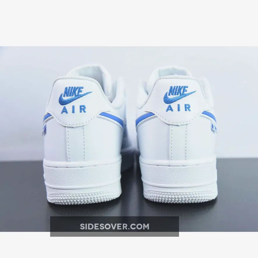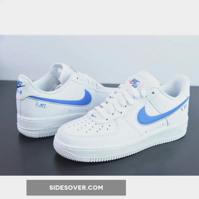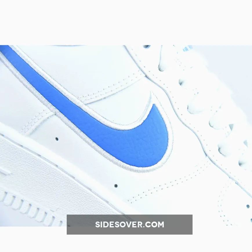 Going over this Nike Air Force 1 Low, it features White smooth leather on the upper, eyestays, and heels. Next, we have jersey mesh on the tongues, a nod to when the shoes were used on basketball courts. Color-matching the cerulean blue hue throughout the heel and vamps branded embellishments, an “AF-1” hangtag is added to further entrench the model’s athletic roots while a seldom orange shade attributes the tongue tab’s Swoosh in conclusion.