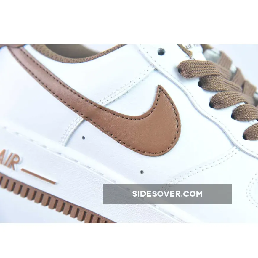 The Nike Air Force 1 Low Pecan opts for a two-tone color scheme where White takes care of the leather upper and Chocolate Brown is used on the contrasting color spotted on areas such as the tongue tags, laces, lining, Swooshes, midsole branding and rubber outsole. Finishing features include the additional White hits on the tongues, heel branding and midsole.