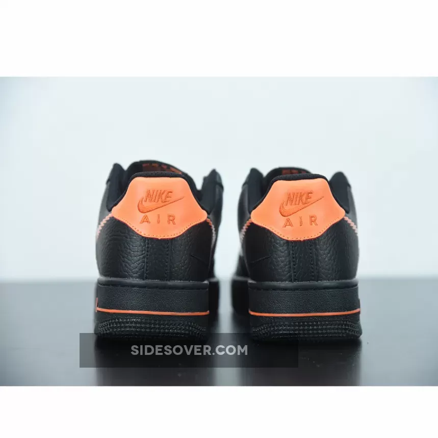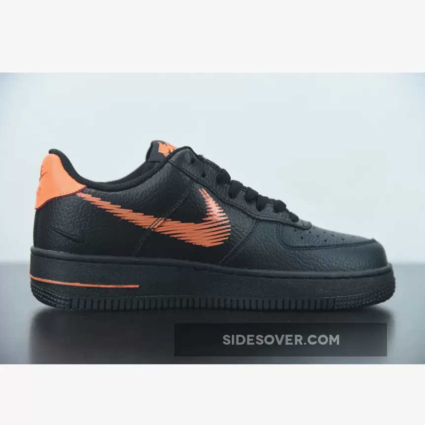 This Nike Air Force 1 features a similar colorway as the VLONE x Air Force 1. Utilizing Black tumbled leather throughout, Orange hits the zig-zag Swoosh logos on the panels, heel, tongue, insole, and AIR on the midsole. Finishing the look we have Black on the laces, nylon tongue, liner, midsole, and rubber outsole.