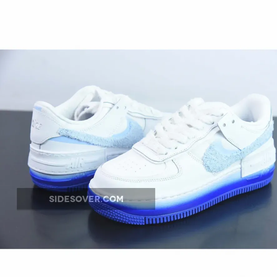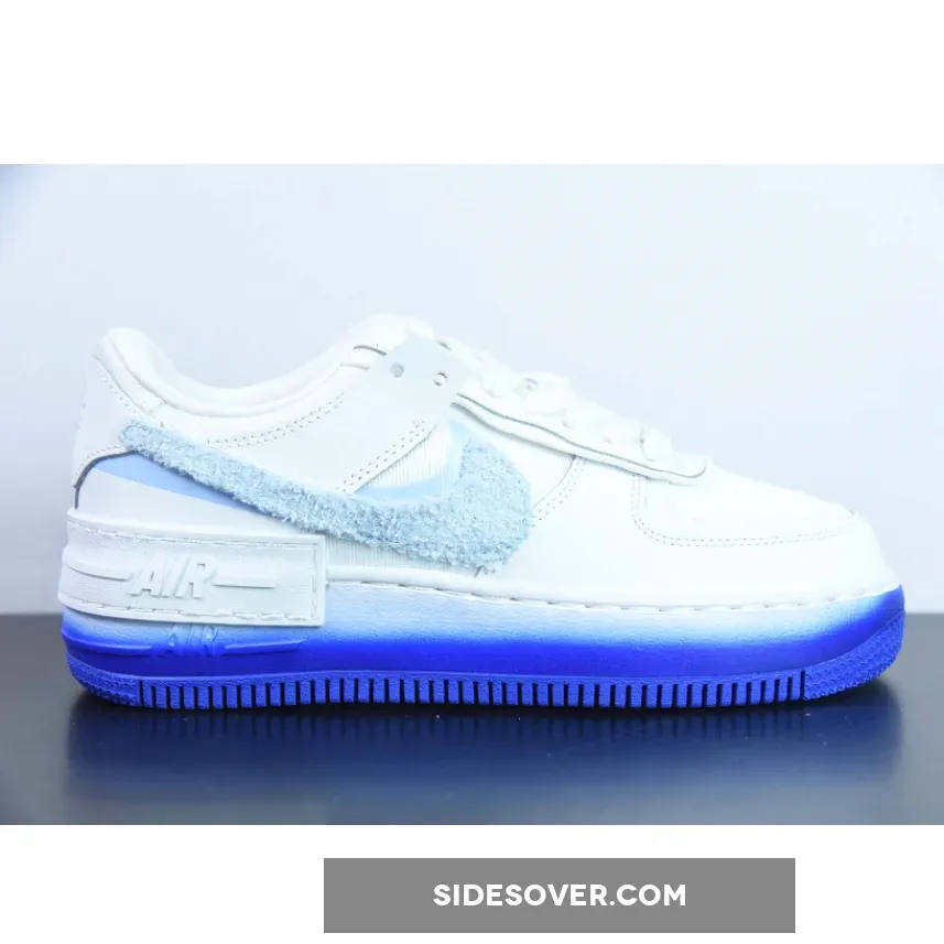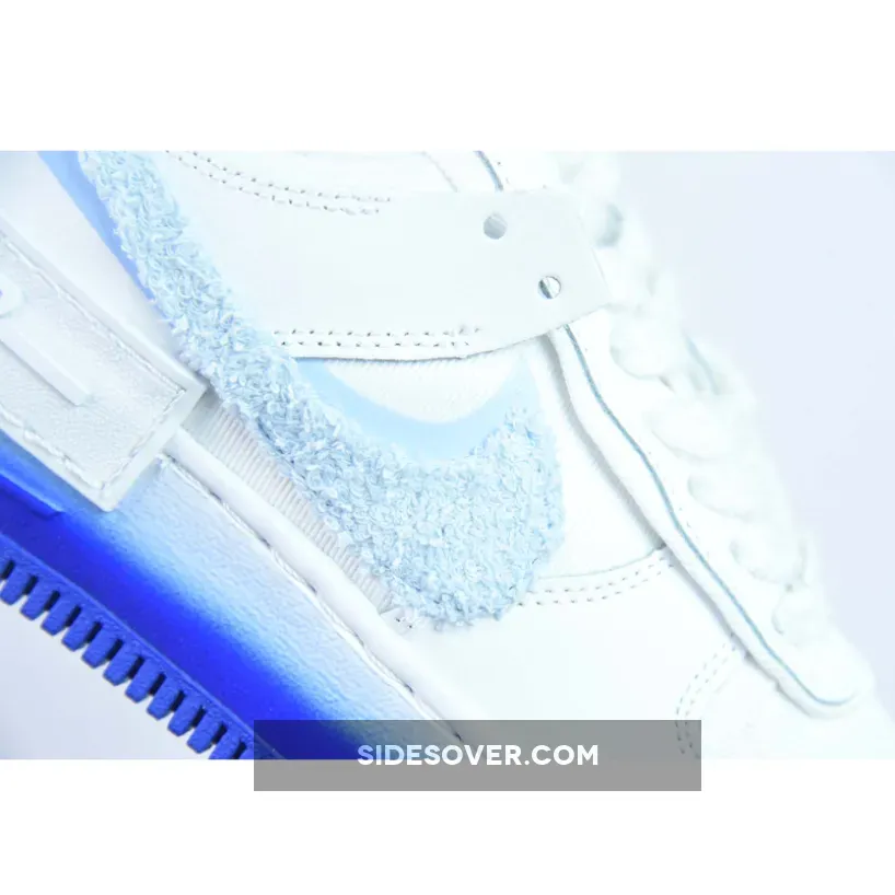 Consistent with others from the collection, the Shadow AF-1 rocks a clean white canvas upper, pastel tints on the chenille Swoosh markings, and airbrushed finishes to the outsole;Infusing a touch of pastels along the duo of “Powder Blue” mid-foot Swooshes, the presiding Check enjoys a disparate chenille textile in tandem with the undone aesthetic of its laces.