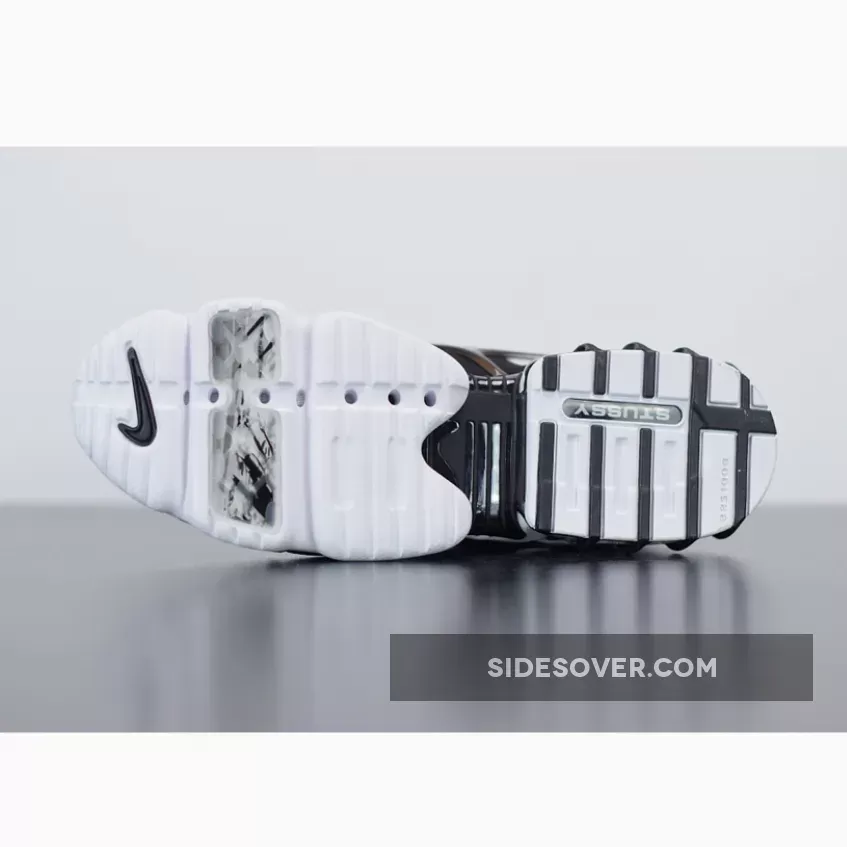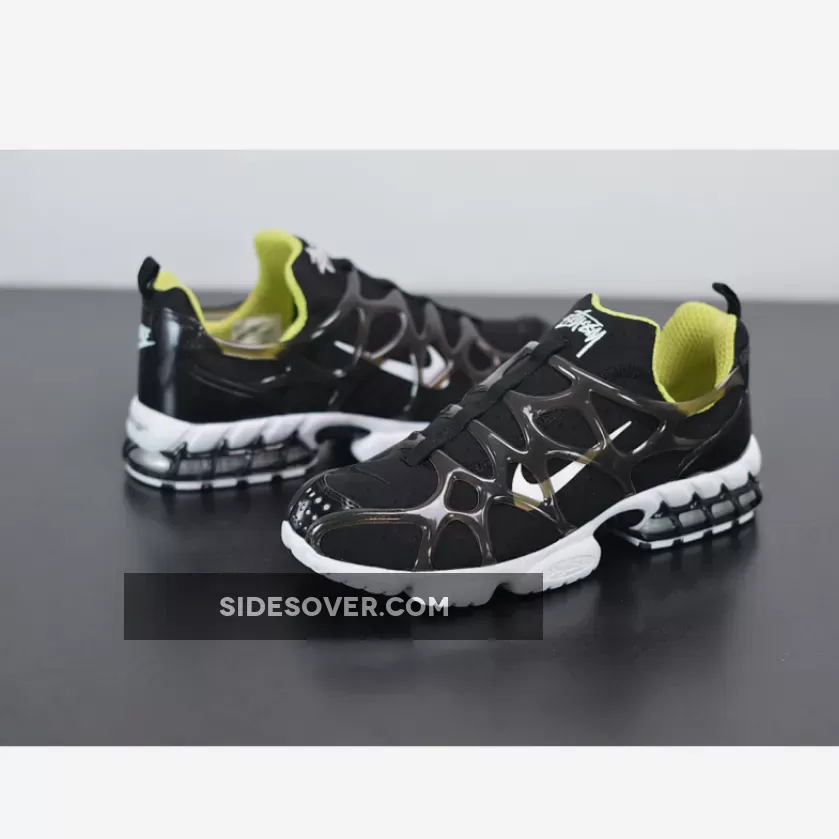 The latest shoe takes design elements from the Kukini silhouette with its web-like overlays on the mesh upper. Stussy branding on the tongue paired with similar tooling as the Air Zoom Spiridon completes the design.