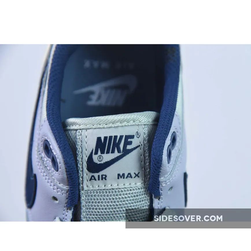 The medial side of the sneak hits the iconic Nike swoosh in white, which pops against the dark blue background. Lastly, the pair is rounded off with a vintage-esque midsole housing the iconic Air Max cushioning.