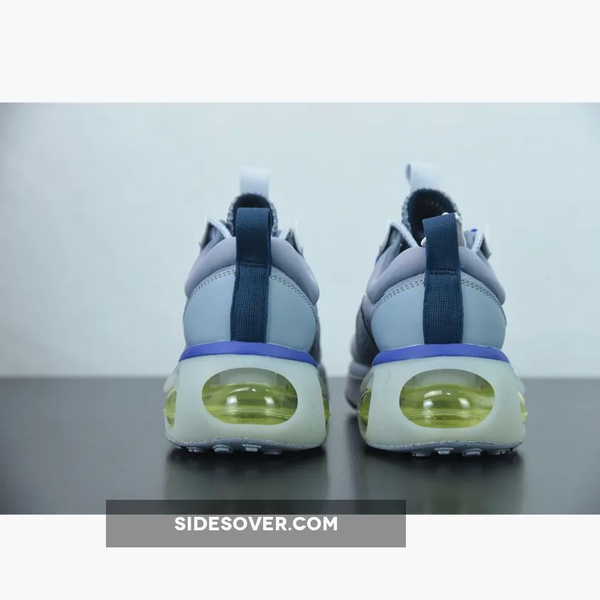 Meshes, dotted decals, and perforations continue the geometric theme across the model. While the lateral side sports a navy Swoosh decal, the medial side opts for matching blue branded overlays and mudguards that create a space-age appearance. Elements such as the padded collar and exaggerated lacestays are also a reflection of modern design trends in footwear. As for the sole unit, the pair sees a blue and white gradient overly stacked above an Air Max-cushioned midsole. The heel reveals a tall green Air unit that opts for a unique peapod shape to further amp up the futuristic factor of the upcoming offering.