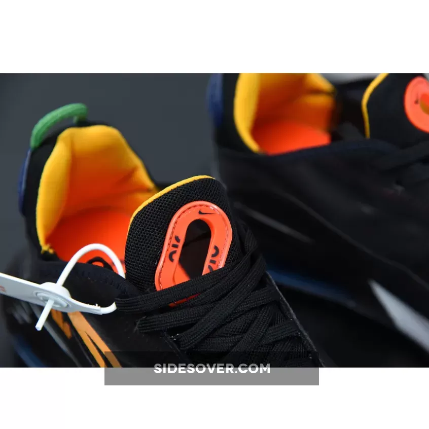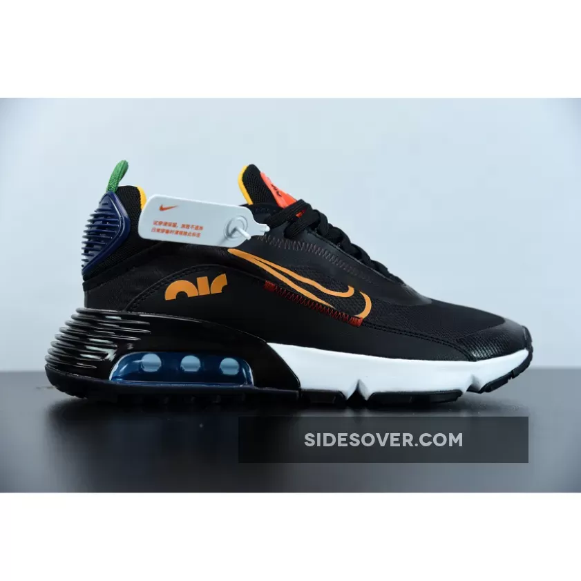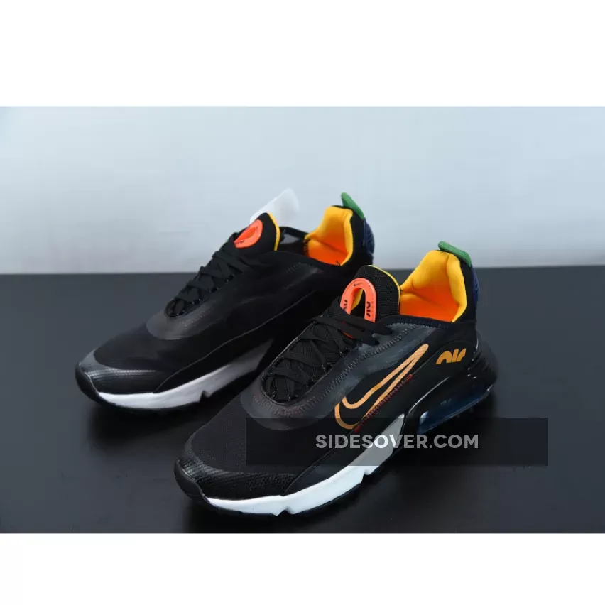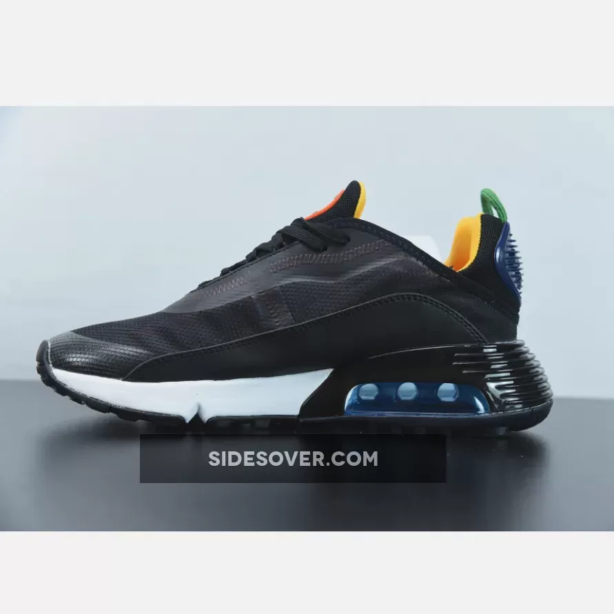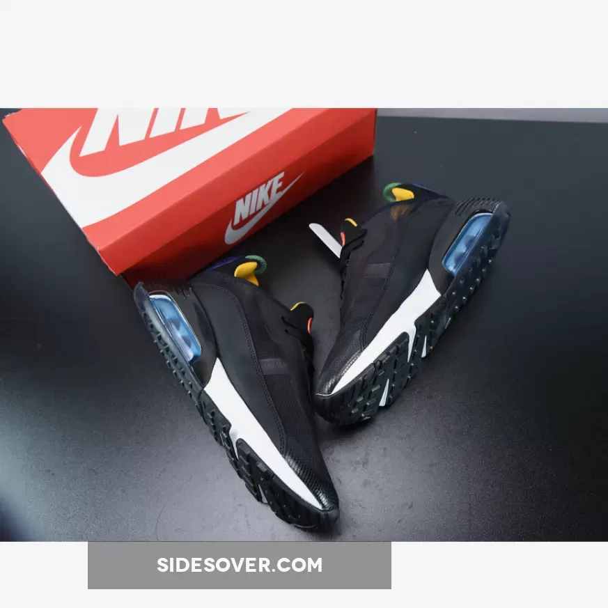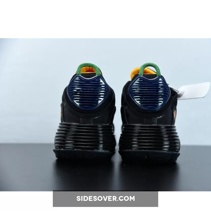 This Air Max 2090 comes dressed in a Dark Grey, Black, Chile Red, and University Gold color combination. Furthermore, Black mesh runs across the upper while the same shade covers the textile leather mudguard. Both Red and Gold accents land on the Swoosh hinted on the tongue, exposed stitching, and liner. Following, Blue adorns the heel and is placed within the Air Max unit while Green appears on the heel loop.