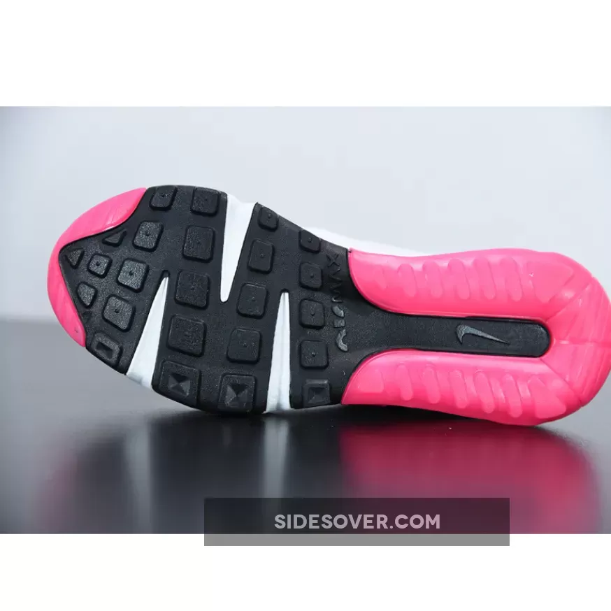 The mudguards along the profile, though just slightly lighter, mimic in grey, layered atop a synthetic film of white. Underneath the latter, Swooshes and accents lines compose of dark blue and the titular pink, respectively, their placement parallel to a lace unit and tongue dress near entirely achromatic. Contrast stitch along the sides, the heel tab behind, and the branding atop the tongue then contrast in the same cool tone as the aforementioned, while its floral opposite hues the front of the tread, the entire heel, and the pull that roots out from underneath the molded heel tab.