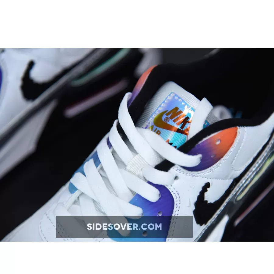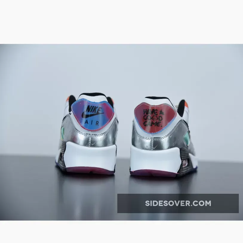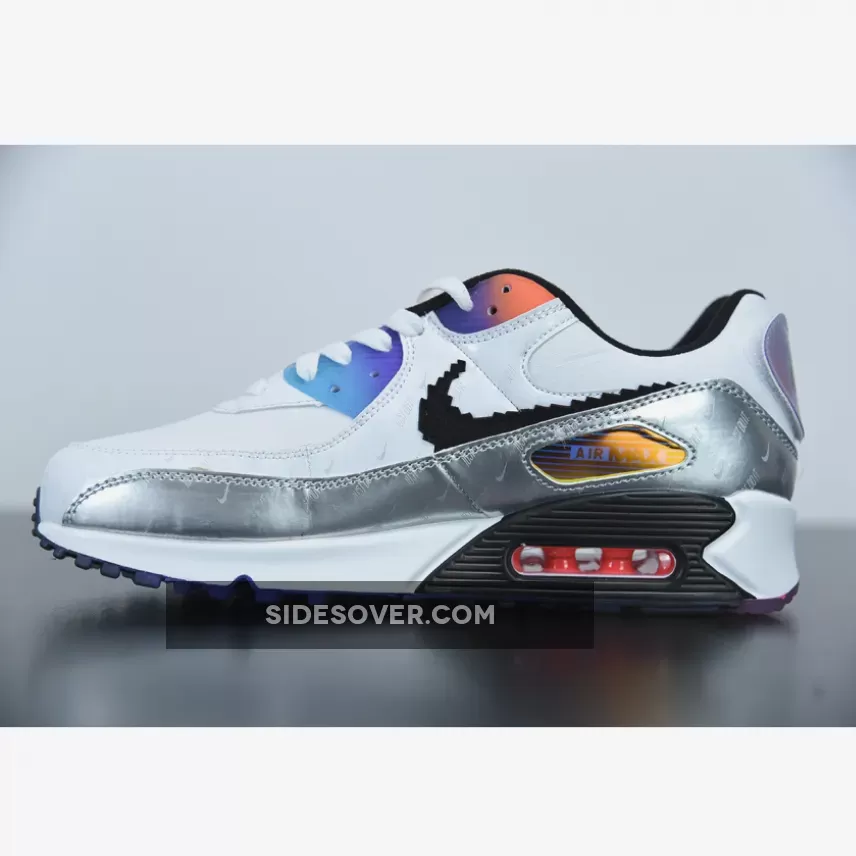 This time it’s the Air Max 90 “Have a Good Game” that tackles the running theme, with like white uppers, overlays finished with an all-over reflective print, pixelated Swooshes, colorful gradients, and shiny iridescent. Uppers arrive in crisp white ripstop, with overlays in white and chrome hosting the aforementioned prints. Striking blue, purple and red gradients grace the eyelets, outsoles, and rear overlays in a semi-translucent finish, whilst tongues and side brand panels boast a bold iridescent finish. The rear overlays allows for customization, with interchangeable Velcro patches included, and the pair is complete with jet black pixelated Checks, black Air cassettes, hot pink Air supports, and mismatched branded insoles.