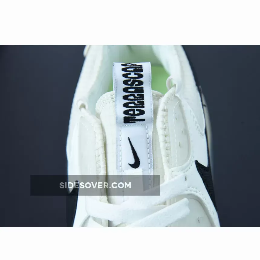 The base of the upper is a clean Sail-coloured nylon with a grid pattern. A layer of suede in the same colour covers the toe cap, the mid-panel, and part of the collar. A creamier coloured suede wraps around the mudguard. A pitch-black profile Swoosh in canvas interrupts all the light colours and captures the eye, similar to the Terrascape branding on the grosgrain lace pull tabs. You’ll also see a sustainable touch with the waffle-patterned tread made up of Nike Grind material.