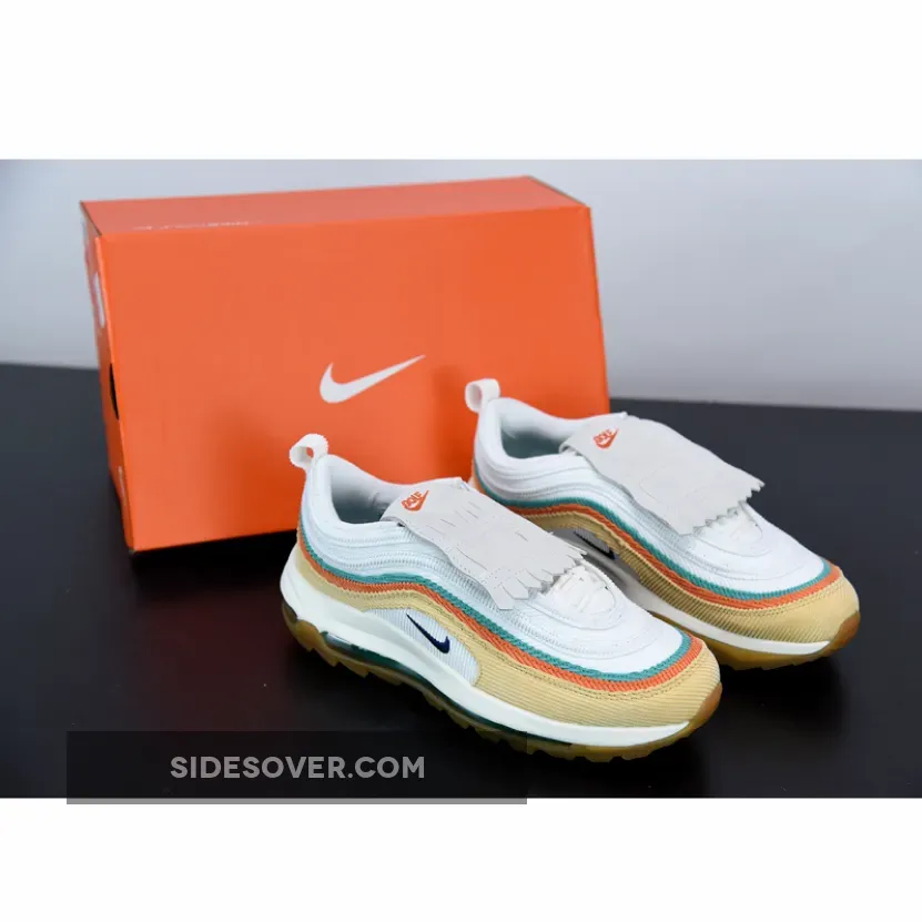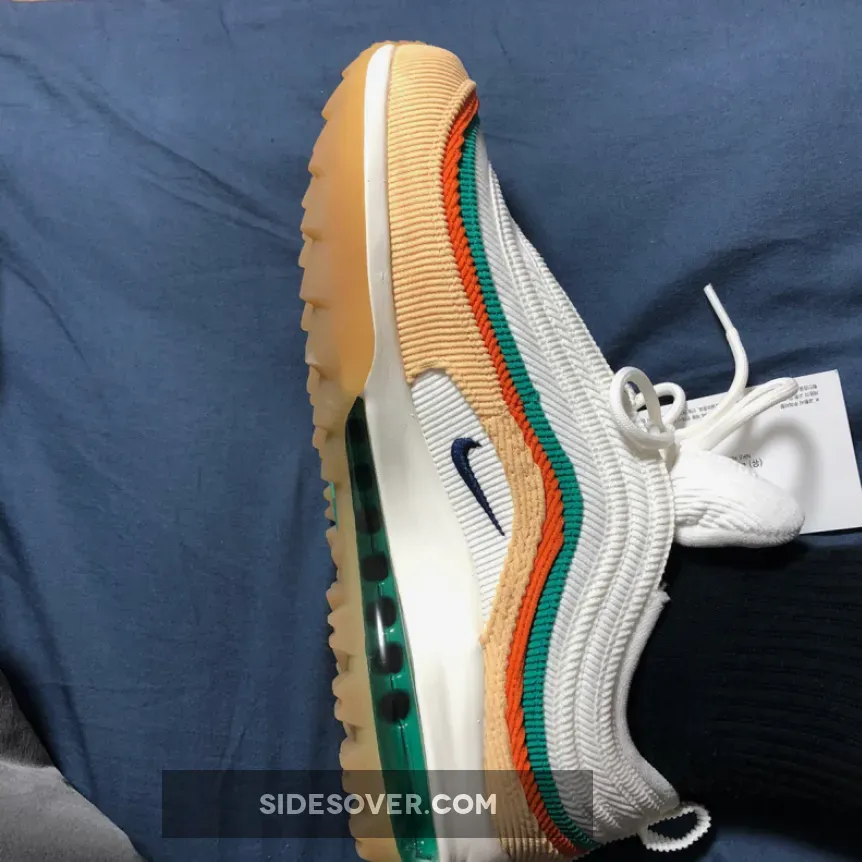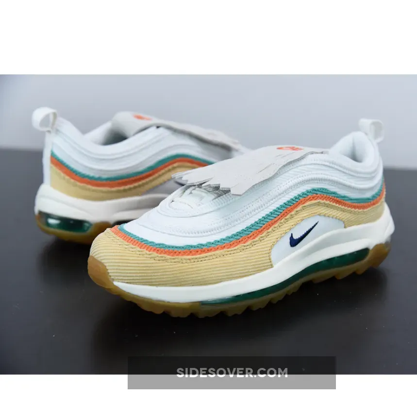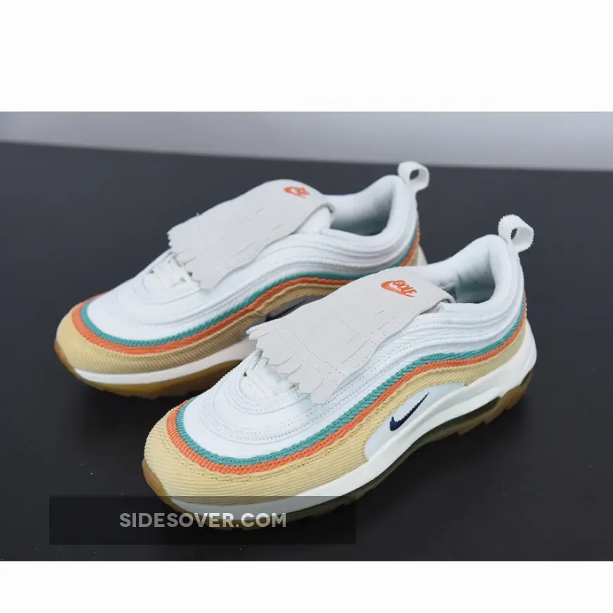 Among these experiments, the Air Max 97 may be the most frequented, it soon ready to lean further onto its inspirations with corduroy construction, a suede kiltie, and a playful colorway.