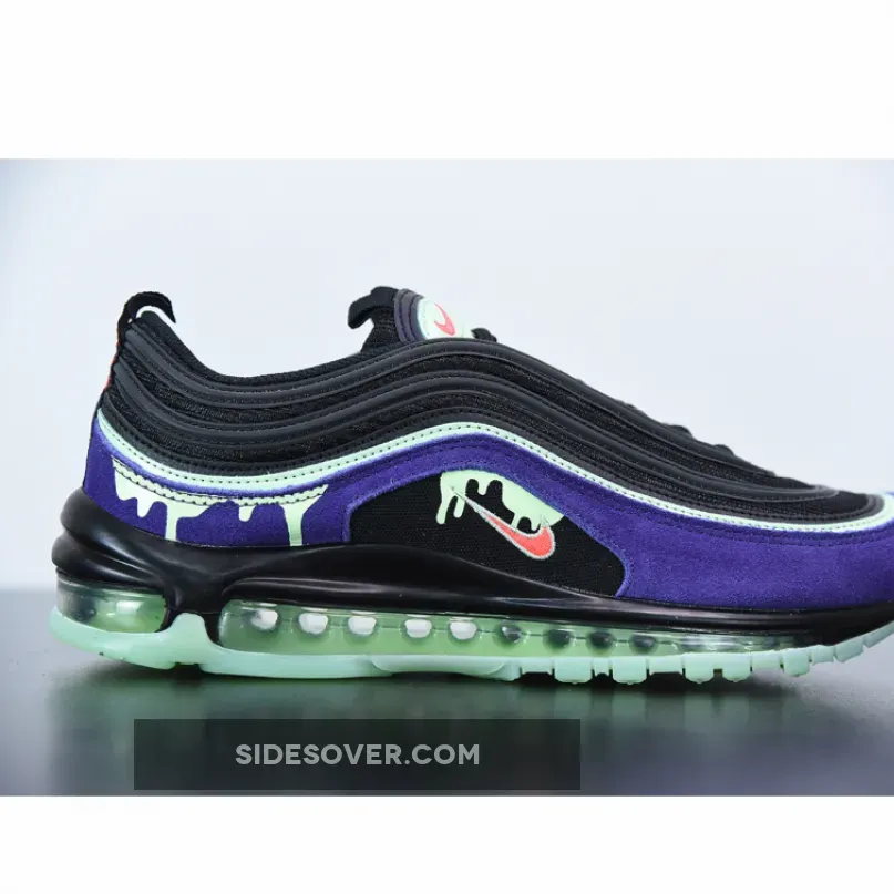 Solid color scheme, love the slime graphic and glow-in-the-dark details on the Air Max 97. Great for Halloween, comfortable and stylish! ?? #NikeHalloween #AirMax97Slime