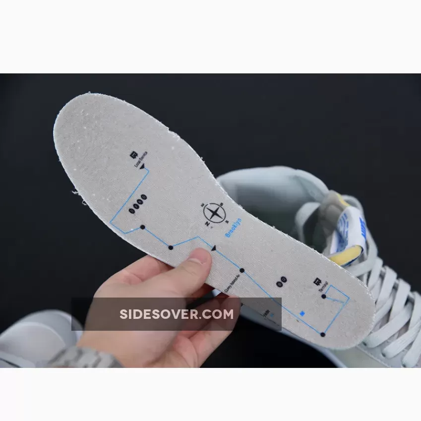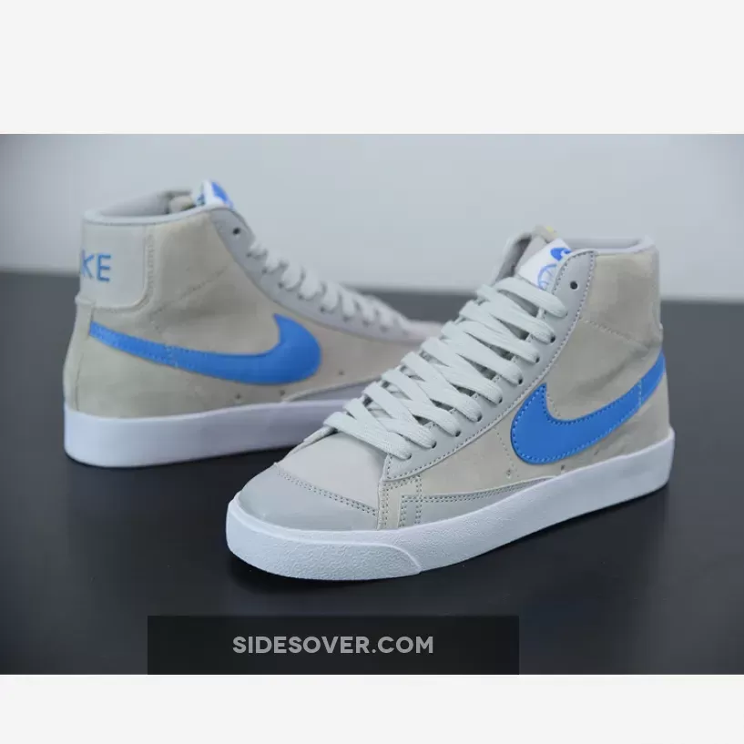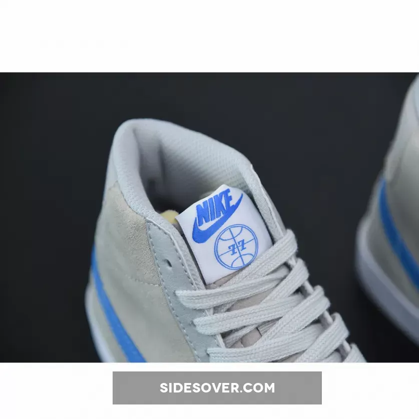 Constructed with suede, leather, and canvas, uppers on the mid-height Blazer boast a “Grey Fog” arrangement complemented with “Light Photo Blue” accents. Overlays along the lateral forefoot, toe, and tongue indulge in a lighter shade of grey; laces follow suit. Branding on the tongue, which features a non-standard basketball graphic accompanied by “77” text, sports a stark blue contrasting hue, just as profile Swooshes and “NIKE” logos on the heel. Akin to a recent Air Flight 89 inspired by Harlem’s Rucker Park, this made-for-hoops silhouette dons basketball-shaped lace dubraes. Sock-liners include Coney Island’s bus route printed in “Light Photo Blue”. Underfoot, the Blazer Mid-variant forgoes its upper’s palette in favor of a plain, but timeless all-“White” finish.