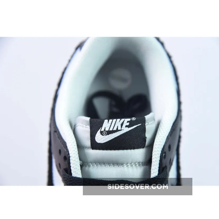 This Dunk Low has a classic two-toned palette. Its leather upper has a light grey base and black overlays.
