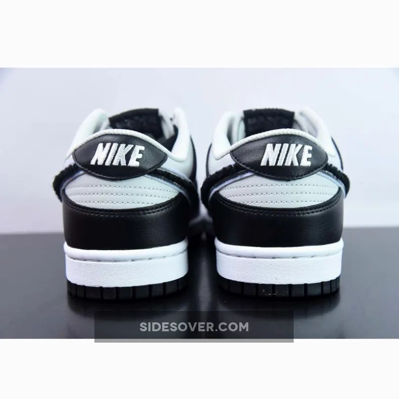The Peter Moore-designed Nike Dunk has featured a lot of materials and looks in its 37 years of existence, from snakeskin to leopard print to a wear-away design. The latest Dunk comes with a unique chenille Swoosh that hasn’t been seen on a Dunk in a long time. Meet the Nike Dunk Low Chenille Swoosh Grey Black.