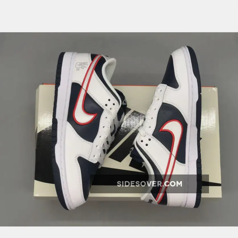 The Nike Dunk Low “Houston Comets Four-Peat” offers a stunning blend of patriotism and classic style. The Obsidian leather base and Red Swoosh perfectly capture the team’s colors. The attention to detail, like the four-finger motif and embroidered Swoosh, elevates the design. Overall, a must-have for sneakerheads and Houston Comets fans alike.