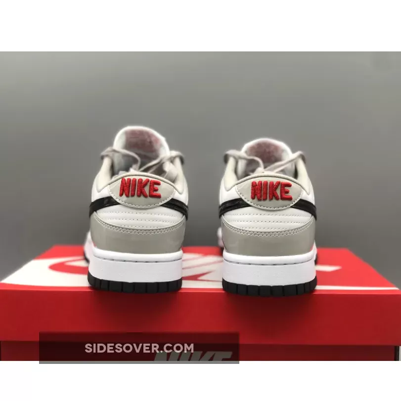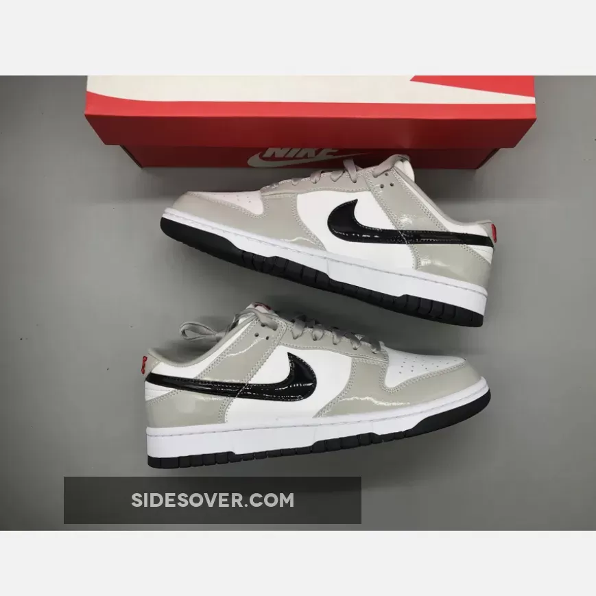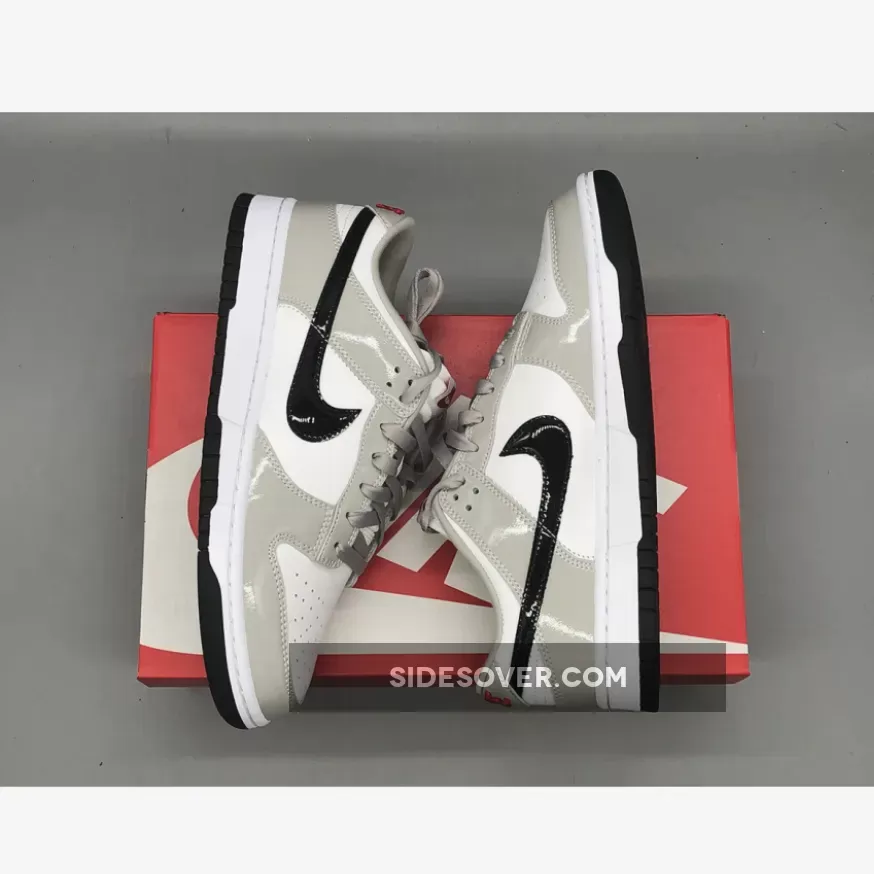 A basic shoe that’s not so basic, the Nike Dunk Low ESS Light Iron Ore is an all-around great everyday sneaker with a stylish twist. Similar to many of its predecessors, this piece starts with a smooth white leather base. However, it’s uniquely dressed with grey overlays that have a subtle shiny patent leather-like finish. The black Nike Swoosh itself also has the same glossy look. Grey laces and “Light Iron Ore” branding on the tongue tag complete the upper’s design. A lightweight sole unit consisting of a white midsole and a black outsole rounds off this Nike Dunk Low.