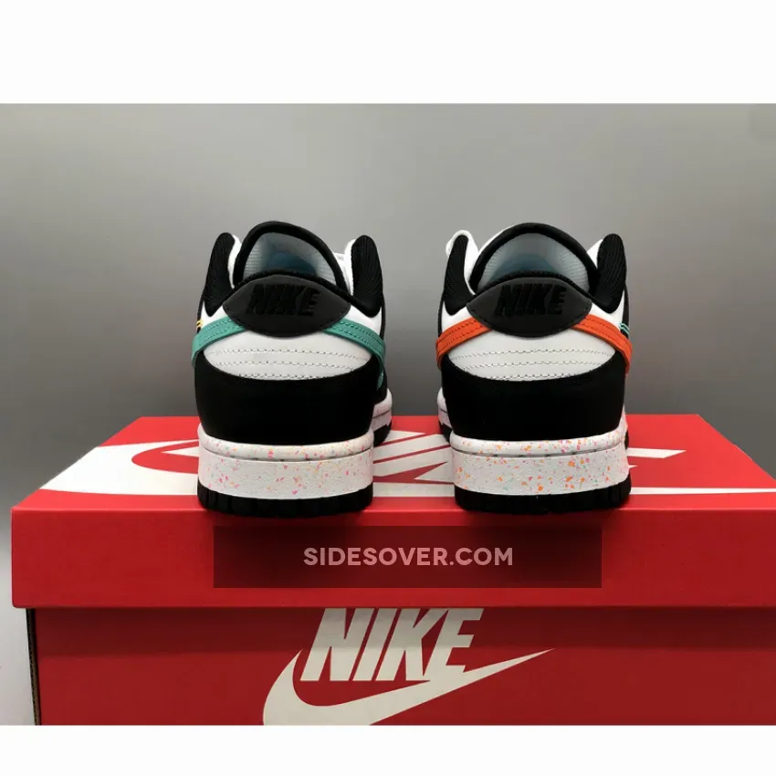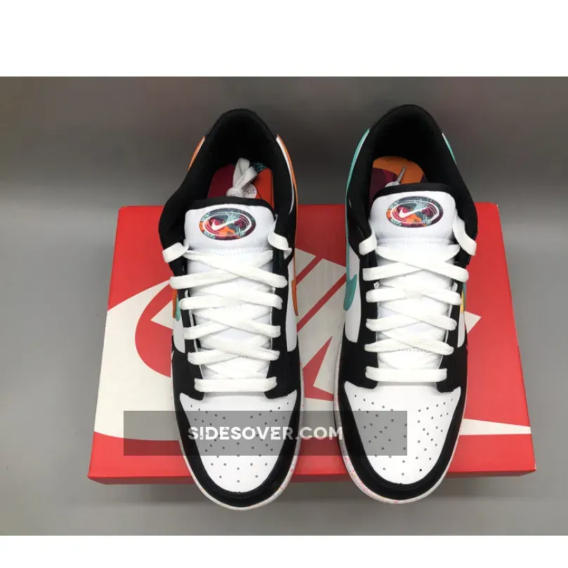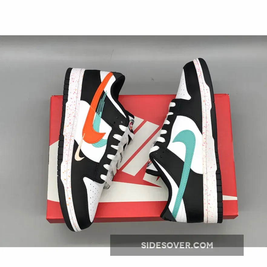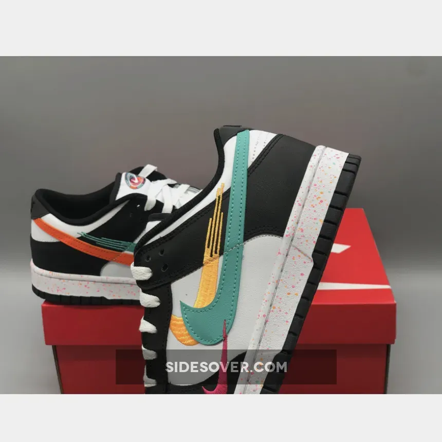 The special edition Nike Dunk Low WMNS” Lunar New Year” features a white leather base accented with contrasting black leather overlays, liner, and outsoles. Essentially a Nike Dunk Low Panda, what really helps this pair stand out is the branding which comes by way of the colorful movement-inspired Swooshes on the side panels which are either embroidered or made out of leather. Elsewhere you will find a colorful tongue patch housing a White Nike Swoosh, a speckled midsole, graphic insoles, blacked out Nike branding on the heels and White laces.