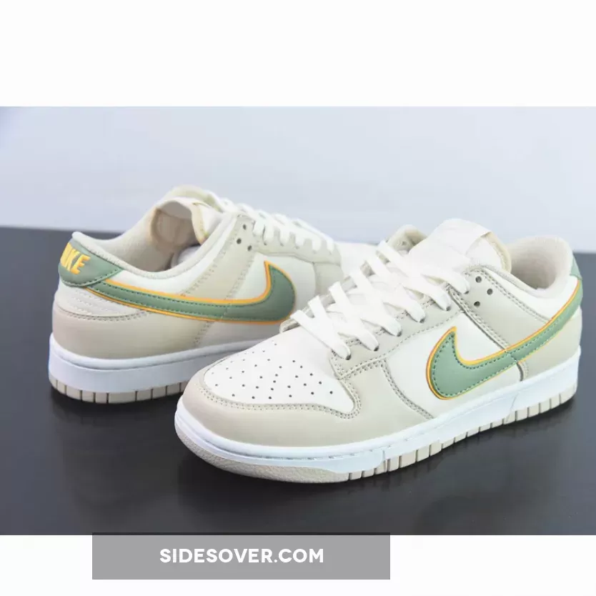 “I’m thoroughly impressed with my new Nike Dunk Low Pale Ivory Oil Green! The sail leather and beige overlays create a stunning earthy tone that’s both stylish and understated. The dual-layered Swoosh logo is a nice touch, adding a pop of color without overwhelming the design. Overall, it’s a great addition to my sneaker collection – 4.5/5 stars!”