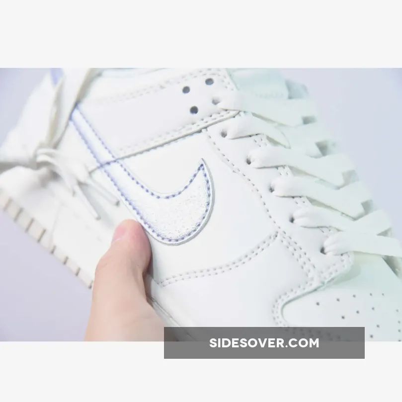 The Nike Dunk Low Oxygen Purple is a classic with a twist. This rendition is outfitted in premium white leather arranged in a panelled construction.