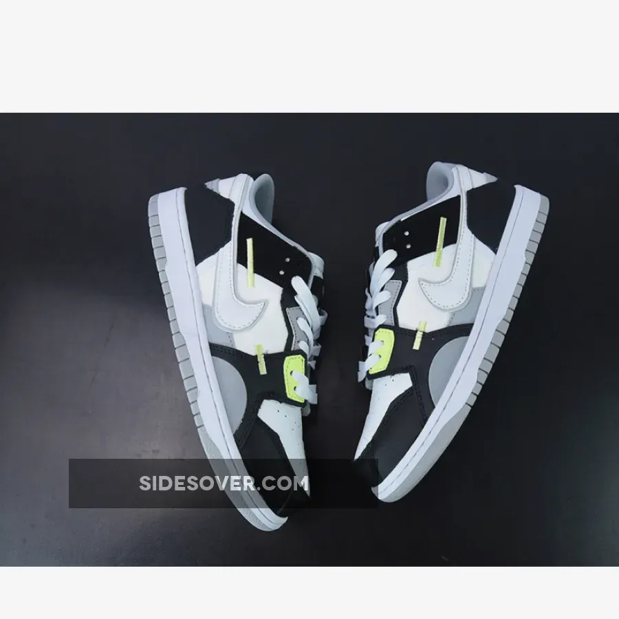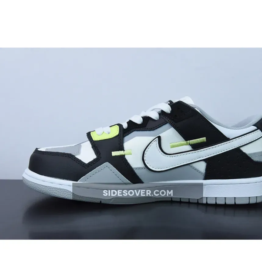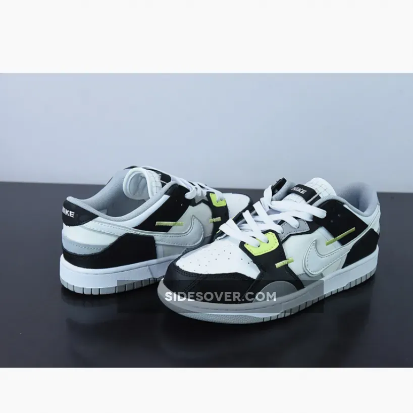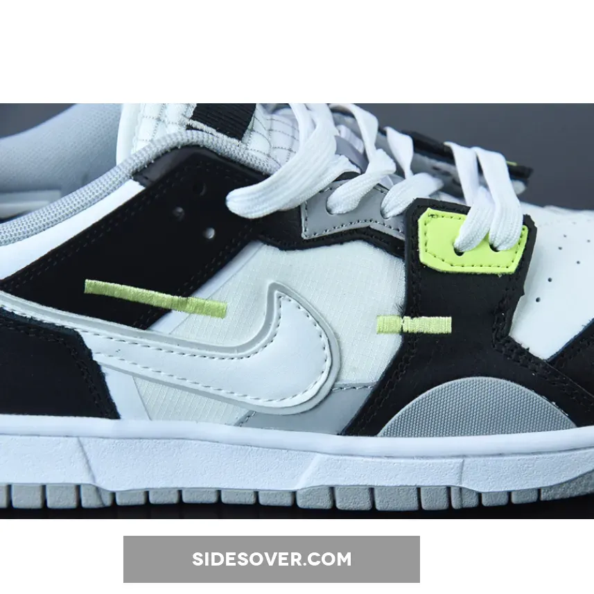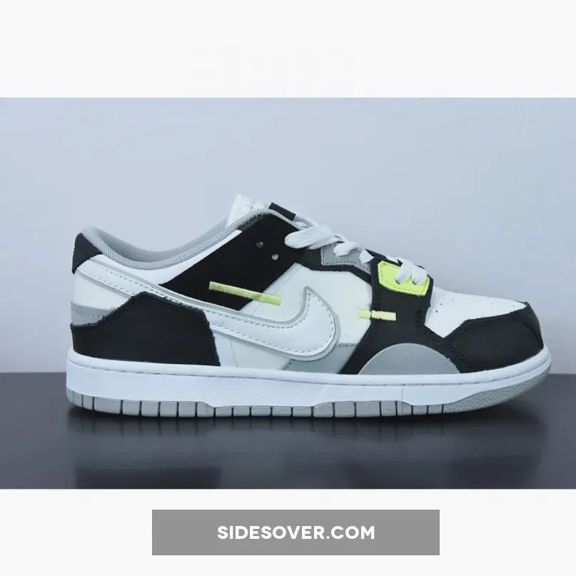 The Nike Dunk Low Scrap has a new addition with a twist, the Nike Dunk Low Scrap Grey. The upper features a leather and mesh combination in black, white, and grey with a modern grid design on the tongue and quarter. But it’s not all that boring with splashes of Lemon Twist accents on the lower eyelets and on the embroidered detailing of the side panels.