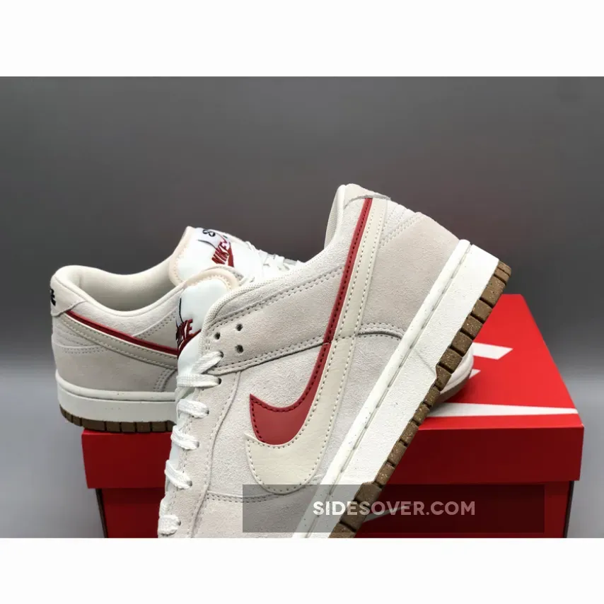 The Nike Dunk Low SE 85 “Sail/Burnt Orange” is one neutral-hued Dunk that celebrates the silhouette’s origins in the best way possible.Constructed from suede and complete with a Grind outsole, not only does this sneaker celebrate Nike’s efforts towards moving to zero carbon emissions, but looks good doing it. The double Nike Swooshes on the medial and lateral sidewalls are made from tumbled leather and come in an off-white and rust-coloured tone. ‘85’ completes the decoration at the top of the tongue.