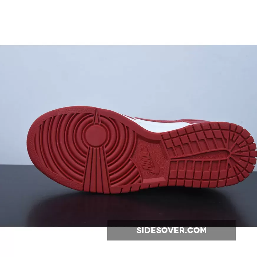 This Nike Dunk Low features leather throughout while White leather appears on the base. Next, Gym Red adorns the overlays, heel, Swoosh logos, and rubber outsole. Sticking out, Yellow fills in the tongue branding, heel, and insoles. Finishing the look is a White midsole.