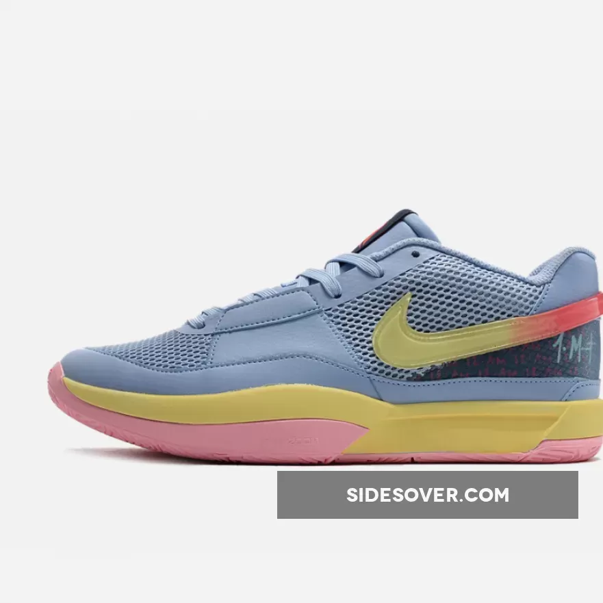 Looking at the shoe, Working with designers to craft a signature light blue color in homage to his blue-collar mentality, the cobalt blue-like hue stretches across the upper while lush yellows and pinks dress the sole unit and gradient infused within the full-length TPU Swoosh.Completing the release, nods to Morant appear at the tongue, unique sockliner, heel and packaging.