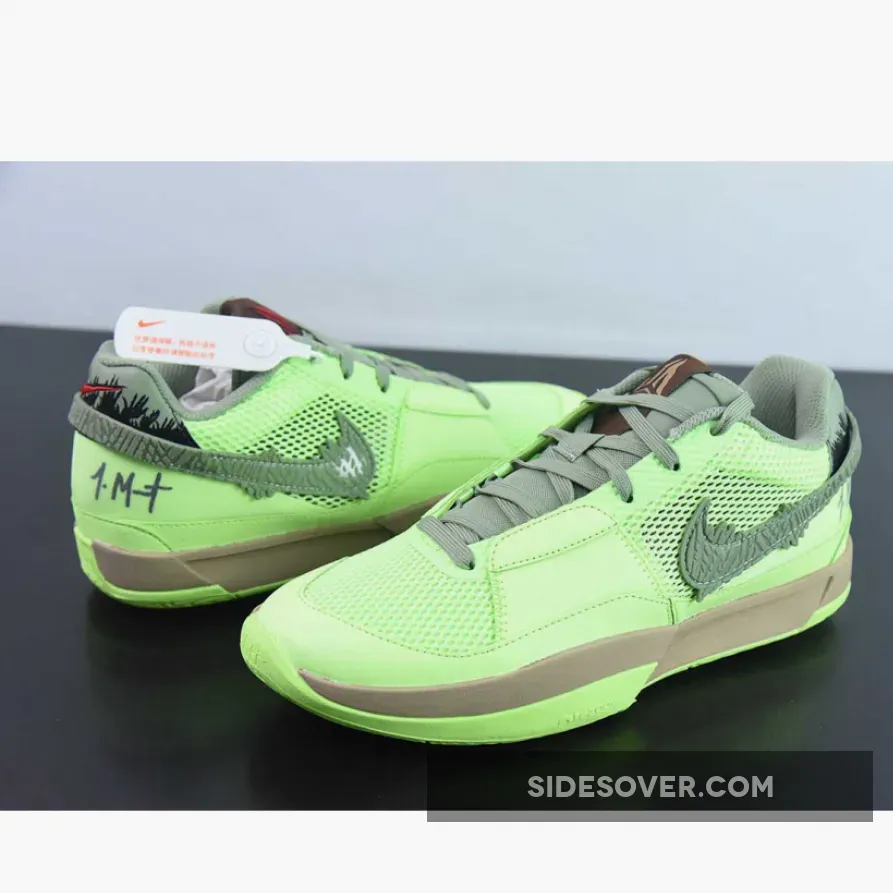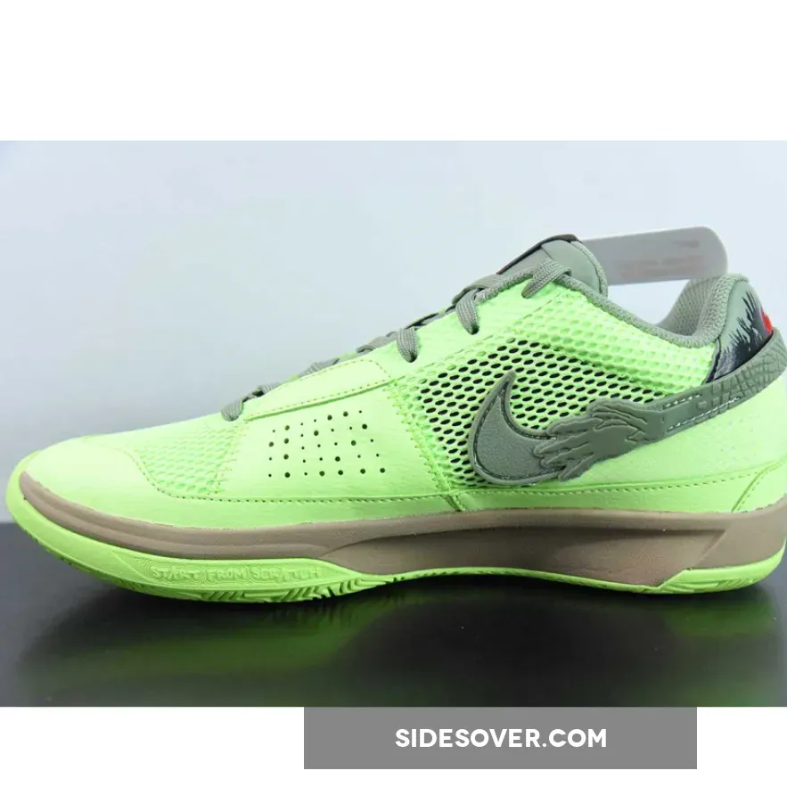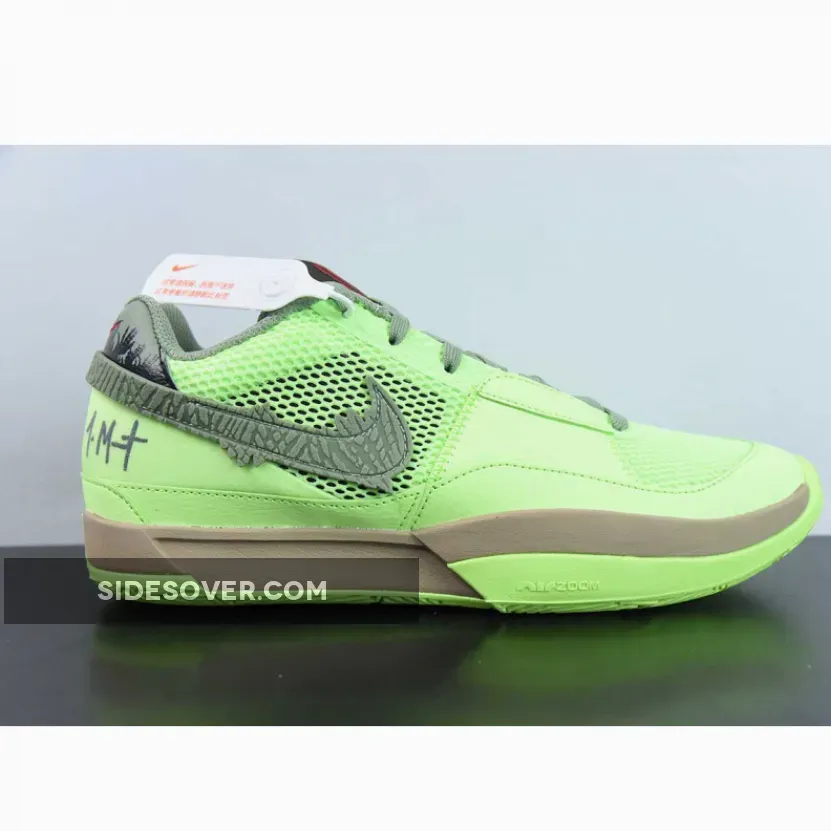 “I’m thoroughly impressed with my Nike Ja 1 ‘Zombie’ purchase! The Lime Blast upper is vibrant & durable, while the Oil Green accents add a nice pop of color. Comfortable fit, great quality – would highly recommend!”