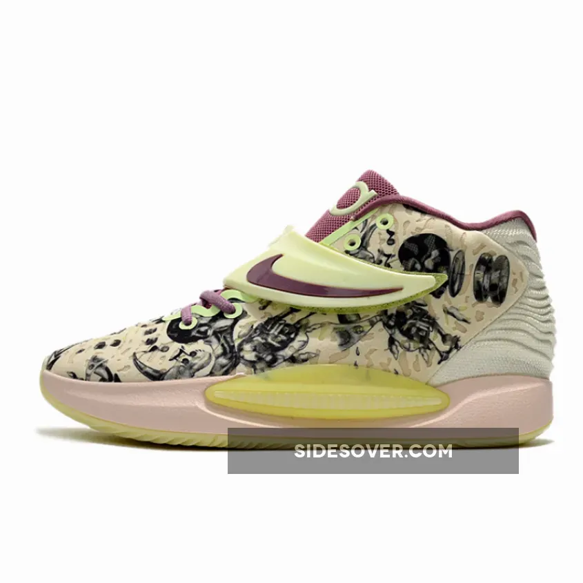 “Overall, I’m thoroughly impressed with my Nike KD 14 Surreal Art edition. The surrealist artwork is stunning, and the pastel volt color scheme is a great contrast. Quality-wise, the materials feel premium, and the Cushlon midsole provides excellent cushioning. The only minor gripe is the laces could be slightly longer. 4.5/5 stars”