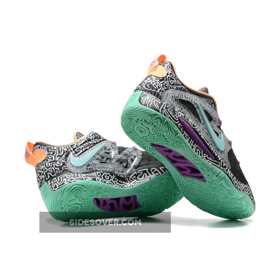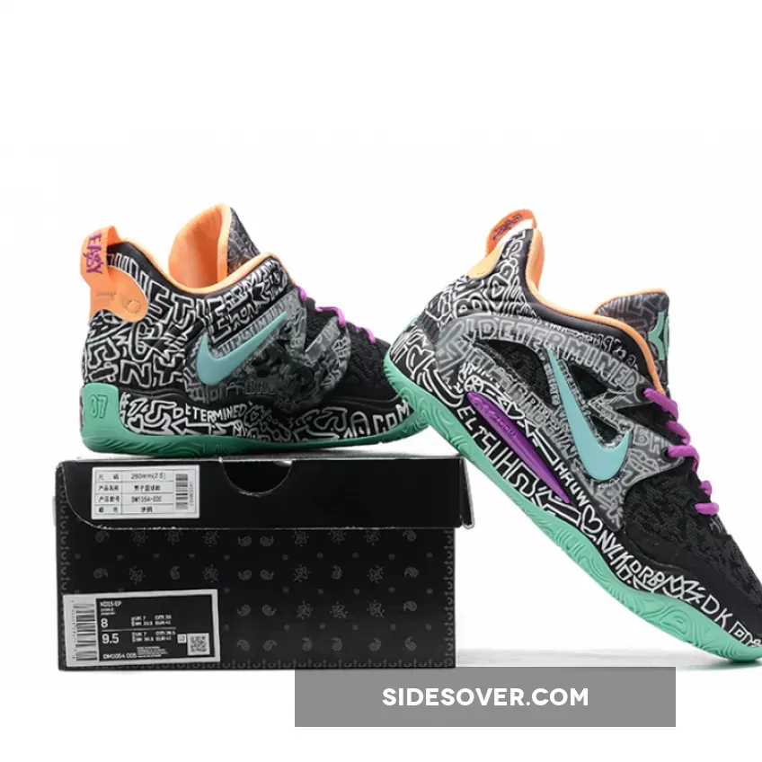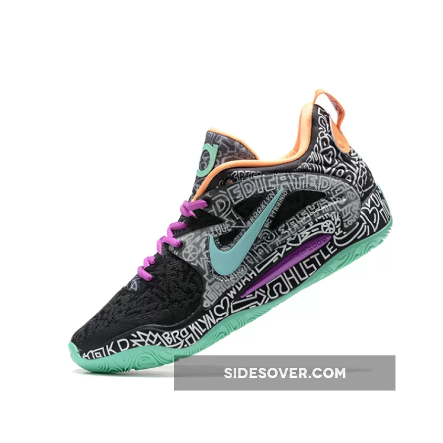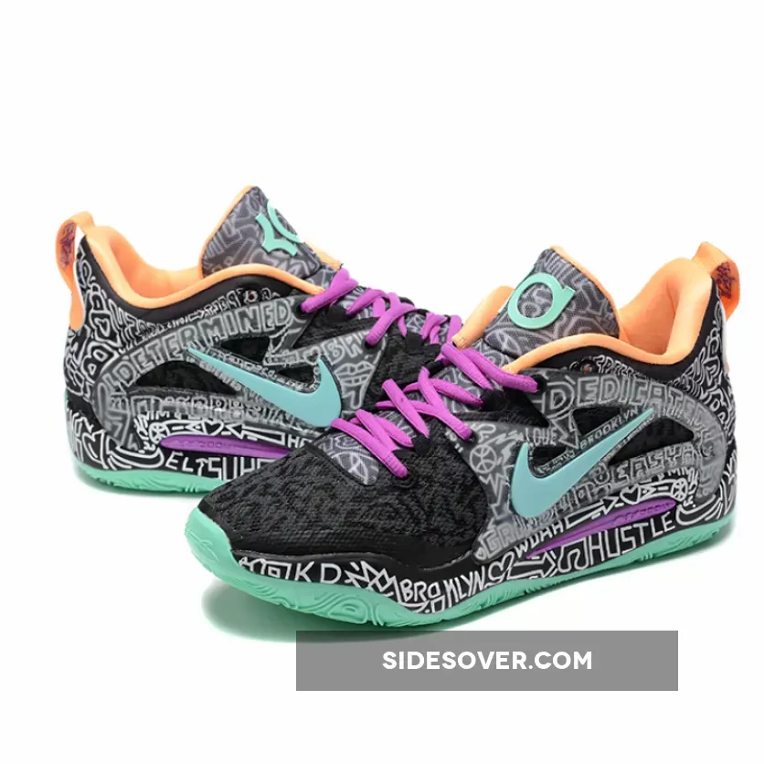 The Nike KD 15 Brooklyn Graffiti, with a black and white graphic print on, is accented with vibrant hits throughout the design.