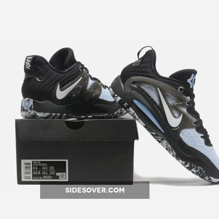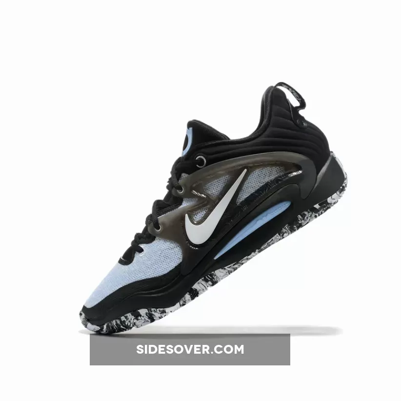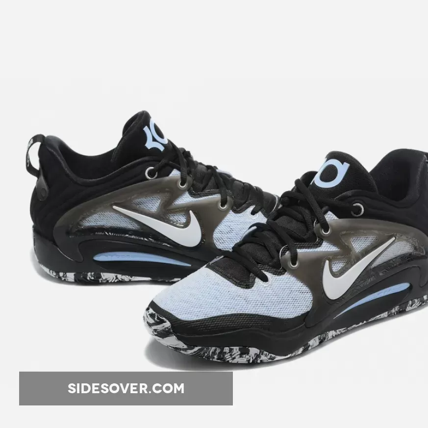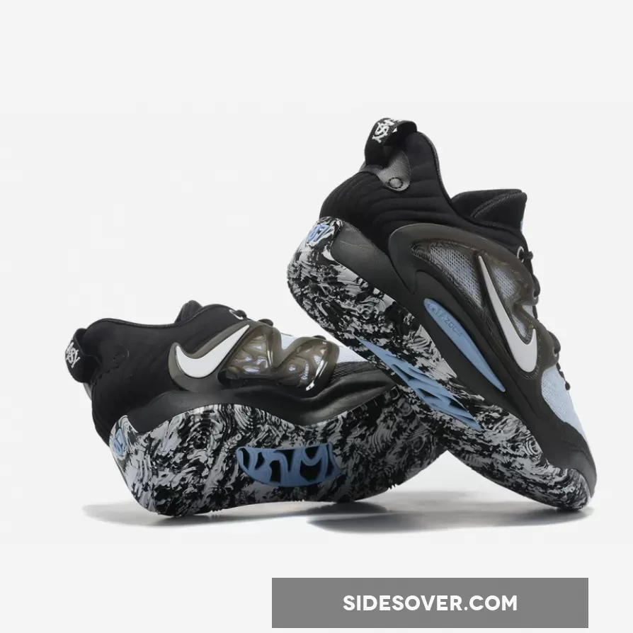 Kevin Durant’s signature basketball shoe with Nike, the Nike KD 15, has a spanking-new variant. Meet the Nike KD 15 Black White Blue. This KD 15 has a “Black/ White/ Light Blue” colour palette. Black dominates most of the upper except for the periwinkle-looking light blue on the mesh toe box and mesh side panels. The “KD” branding on the black tongue is the same light blue on the mesh panels of the upper. The signature profile Swooshes on both sides of the shoe are pristine white with a black outline. The heel tabs feature an embroidered light blue “EASY”, a nod to KD’s moniker, “easymoneysniper”. The no. 7, Durant’s jersey number, appears on the heel counter. The KD-branded black insoles also feature a paisley print.