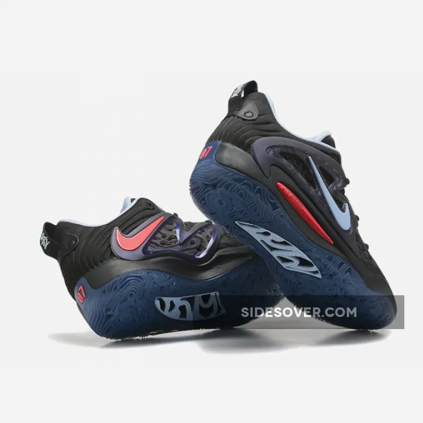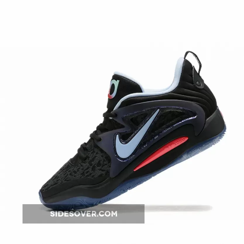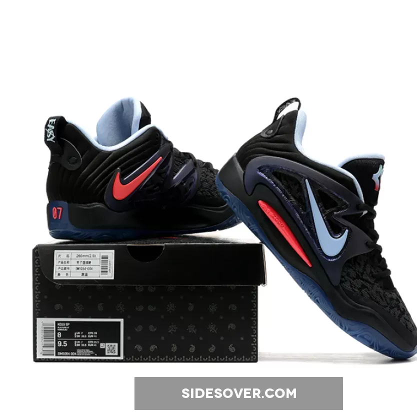 Master the game with Nike KD 15 Black Red Light Blue. Made to deliver style, speed and comfort, this iteration of American basketball player Kevin Durant’s 15th signature shoe is great for an outdoor court and beyond. Its lightweight build features a tonal black mesh upper that’s supported by blue TPU overlays on the side panels including a fashionable sky blue Swoosh.