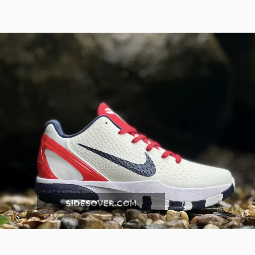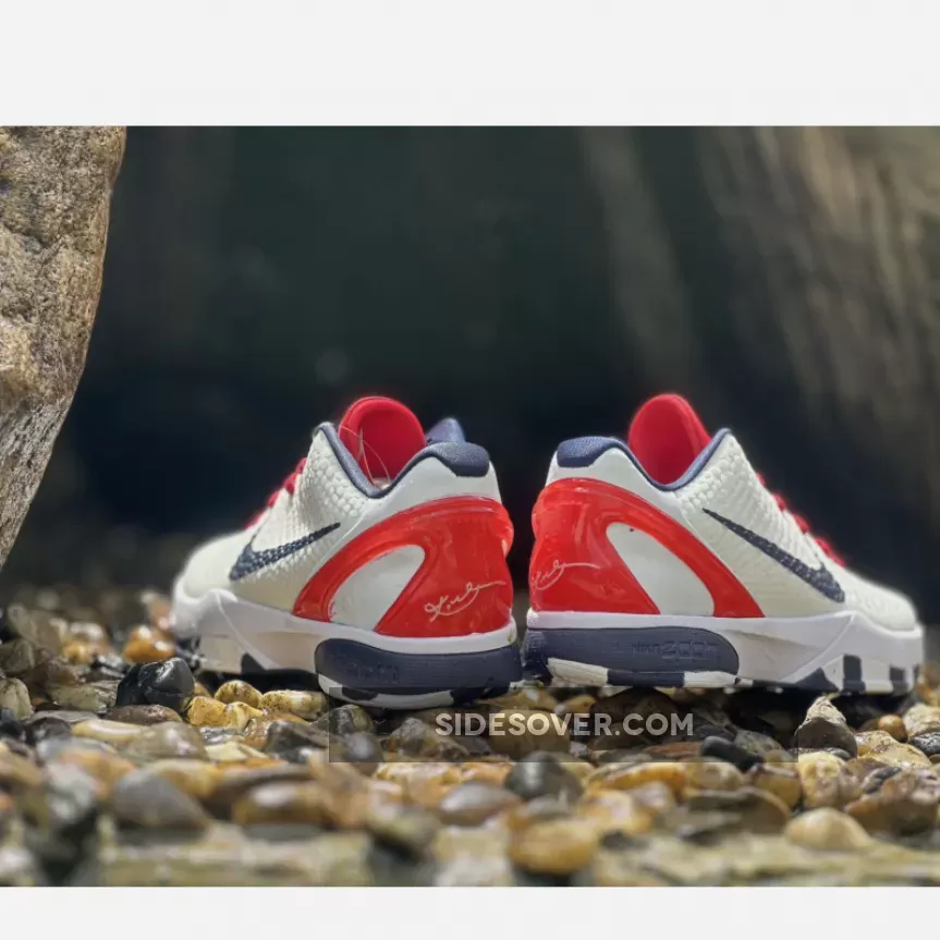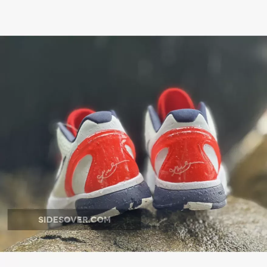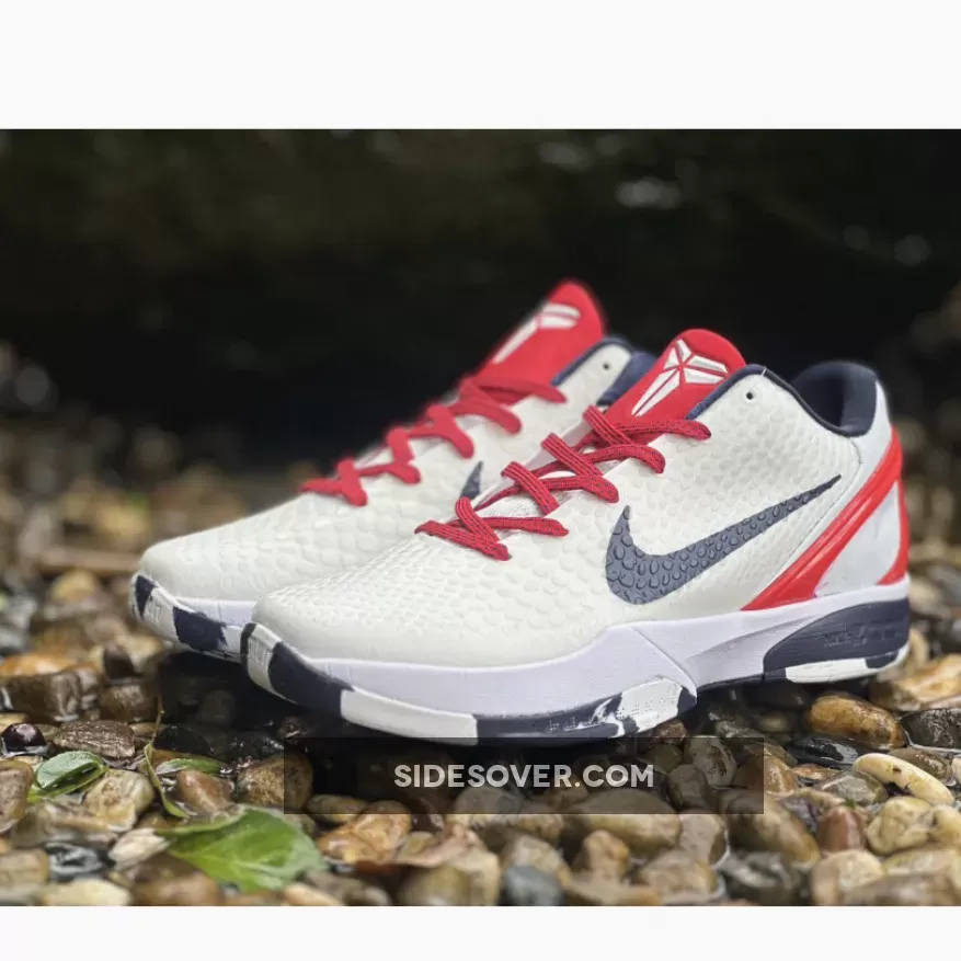 The first pair’s upper is predominantly decked in White with Navy Blue accents on the Swooshes, the sockliner, with both working in tandem over the sole unit. The second contrasts this with a Navy Blue base layer with White accents on the Kobe logo, Swooshes, midsole, and heel overlay. Both pairs are imbued with with Red accents to complete the trifecta of colors that form the Stars and Stripes. They’re finished off with a polished White midsole and an eye-catching Navy and Red marbleized outsole.