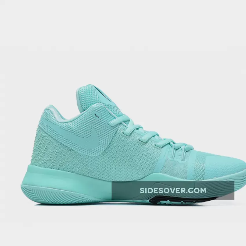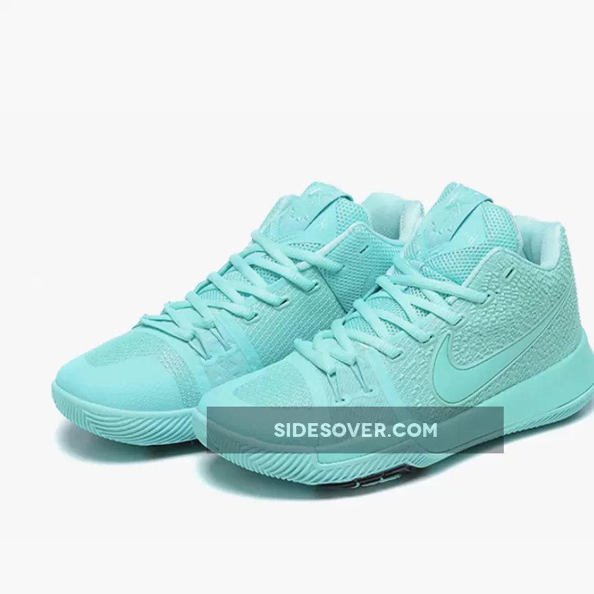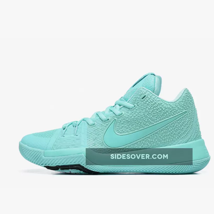 This Nike Kyrie 3 features an Aqua, Black and White color combination. Across the uppers is the use of Aqua which resembles Mint Green. The same shade covers the toe and heel. Following is Black that is speckled across the midsole while hinted on the outsole. Completing the look is an Aqua outsole.